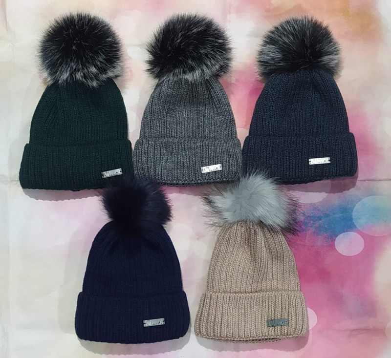 Дитячі польські демісезонні в`язані шапки на трикотажній підкладці для дівчат оптом, р.38-40 (Польша)
