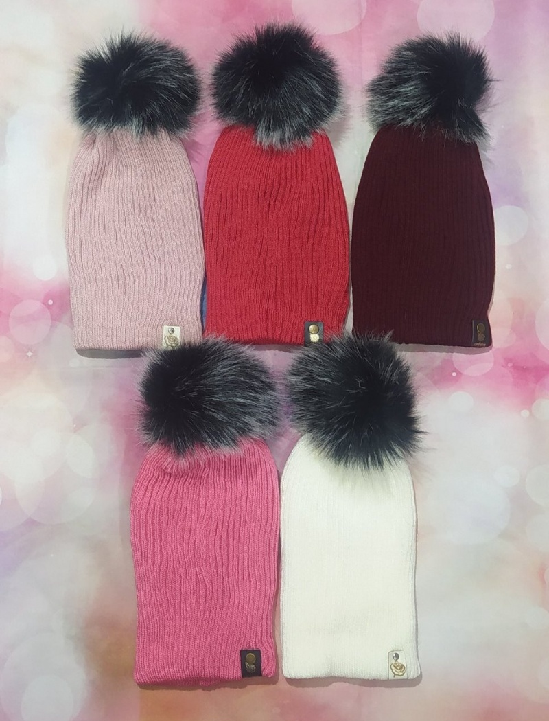 Дитячі польські демісезонні в`язані шапки на трикотажній підкладці для дівчат, р.45-48 (Польша)