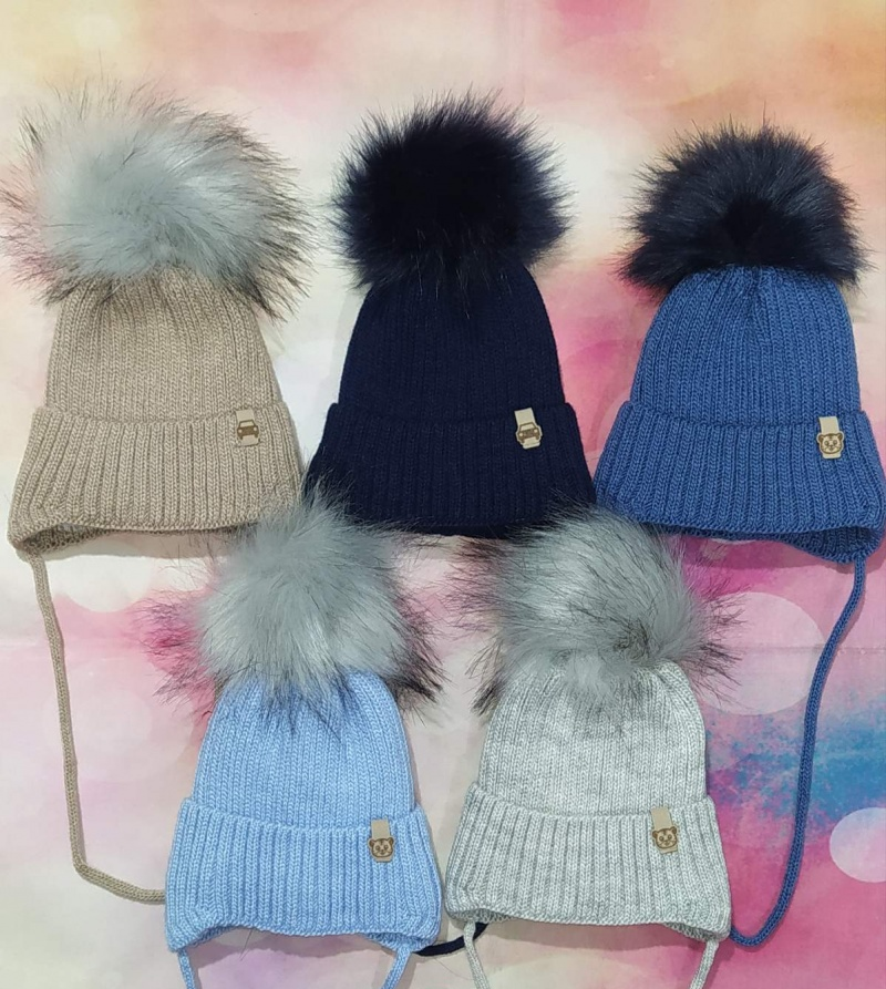 Демісезонні вязані шапки на трикотажній підкладці для хлопців, р.52-54 (Польша)