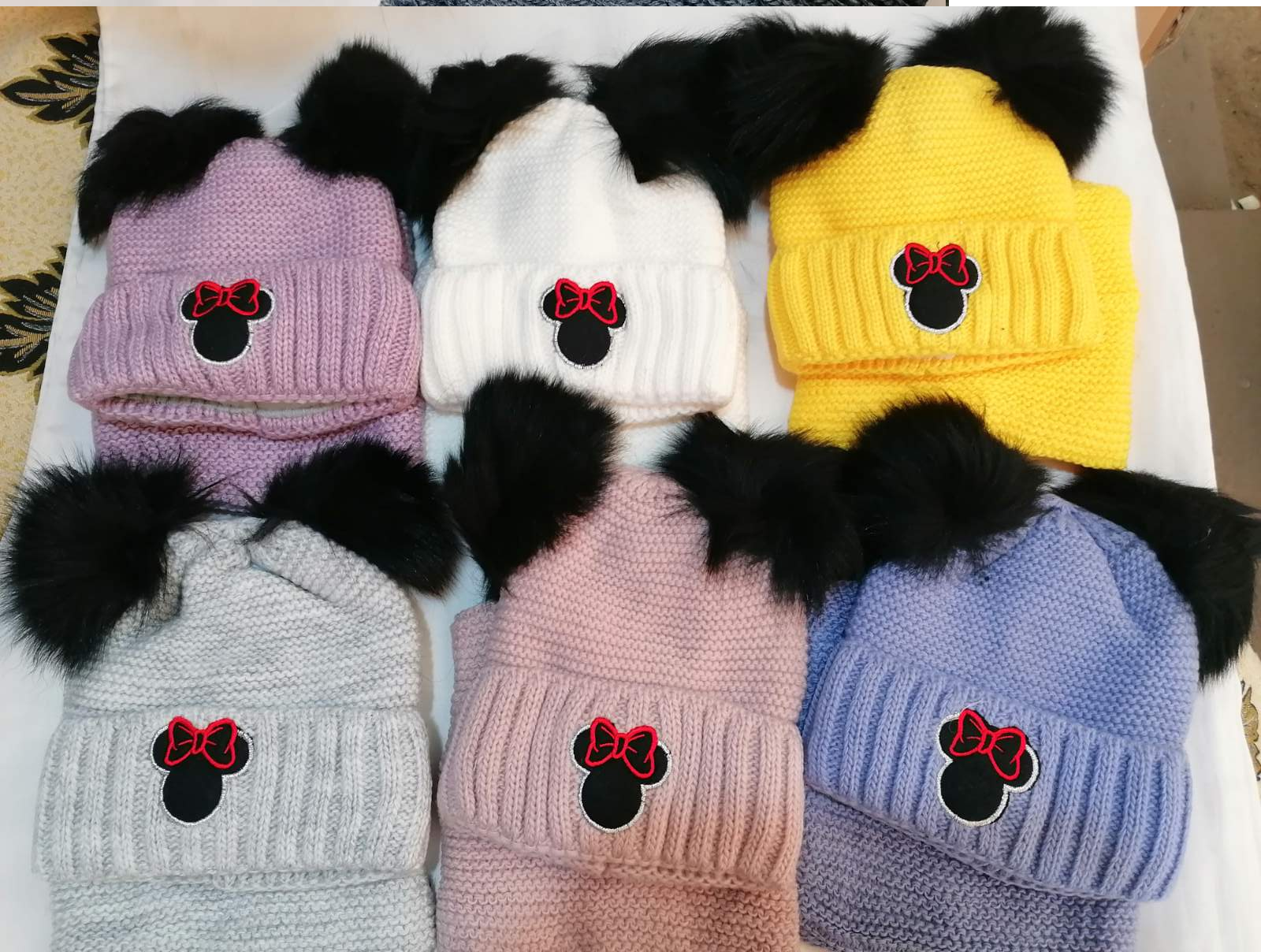 Дитячі польські демісезонні в`язані шапки на трикотажній підкладці для дівчат, р.48-50 (Польша)