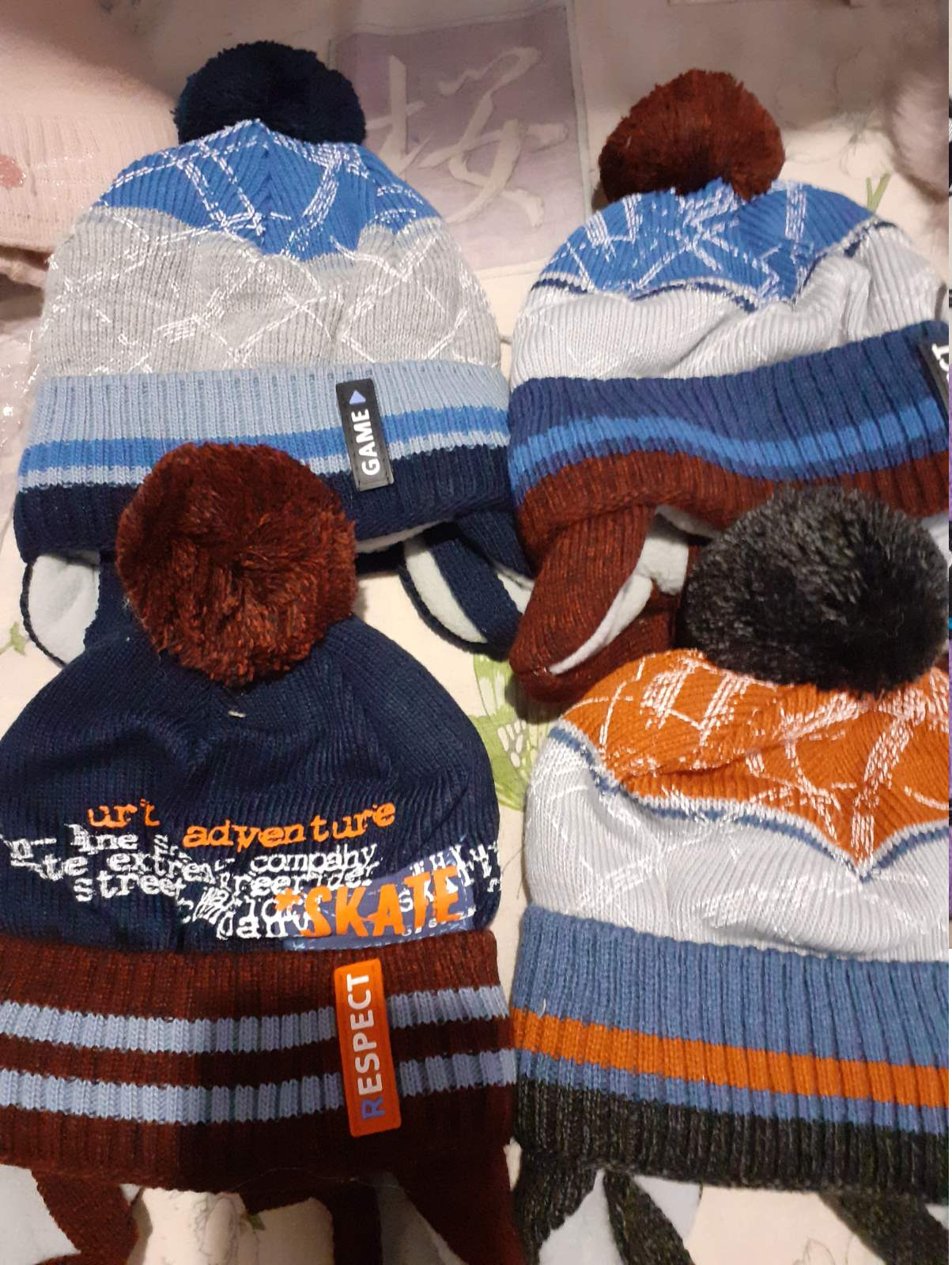 Дитячі польські демісезонні в'язані двошарові шапки оптом для дівчат р.52-54 (Польша)