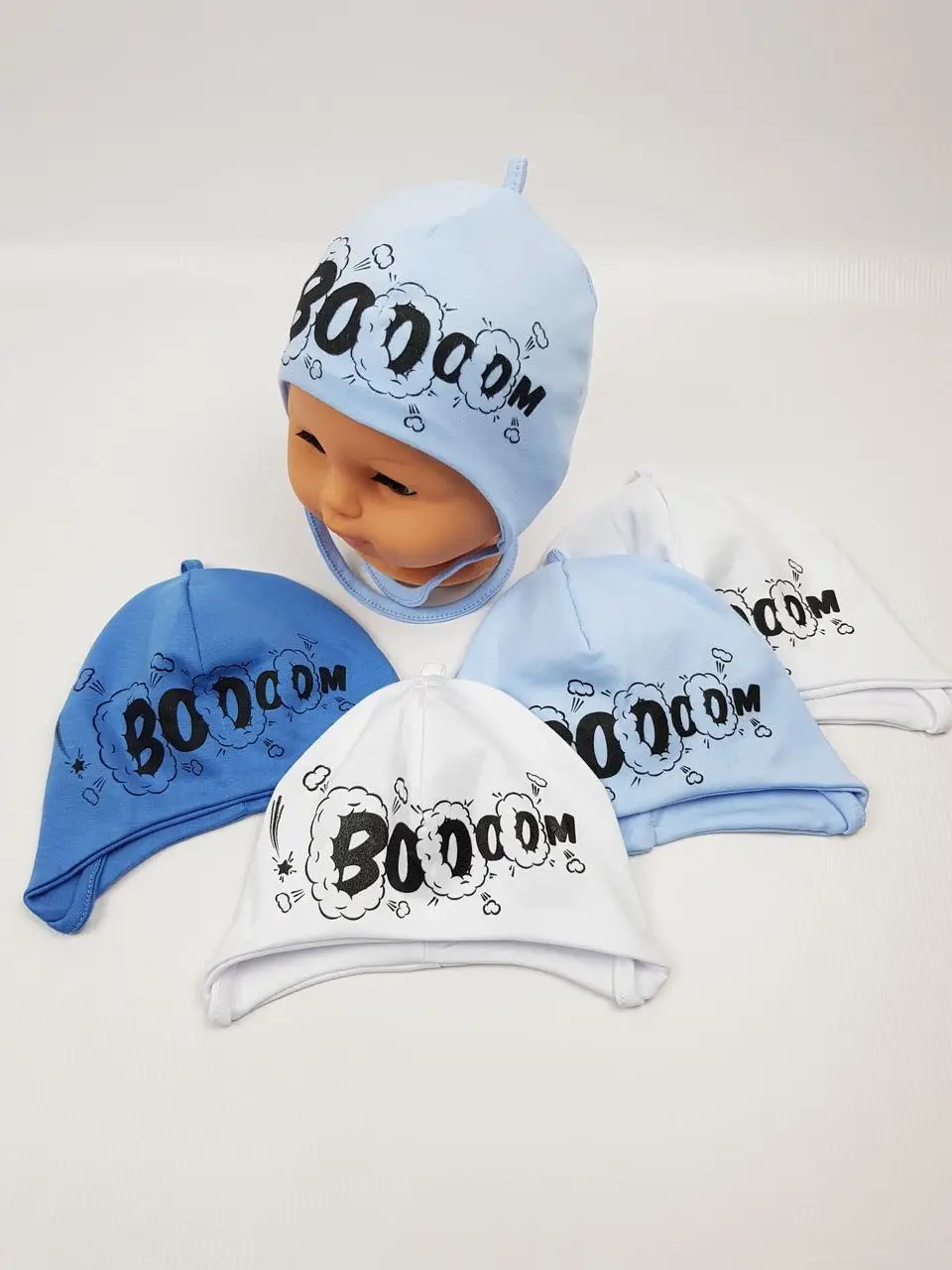 Дитячі польські демісезонні в`язані шапки на трикотажній підкладці для дівчат оптом, р.38-40 (Польша)
