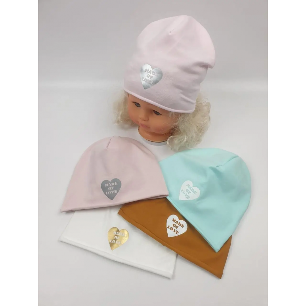 Дитячі польські демісезонні в`язані шапки на трикотажній підкладці для дівчат, р.45-48 (Польша)