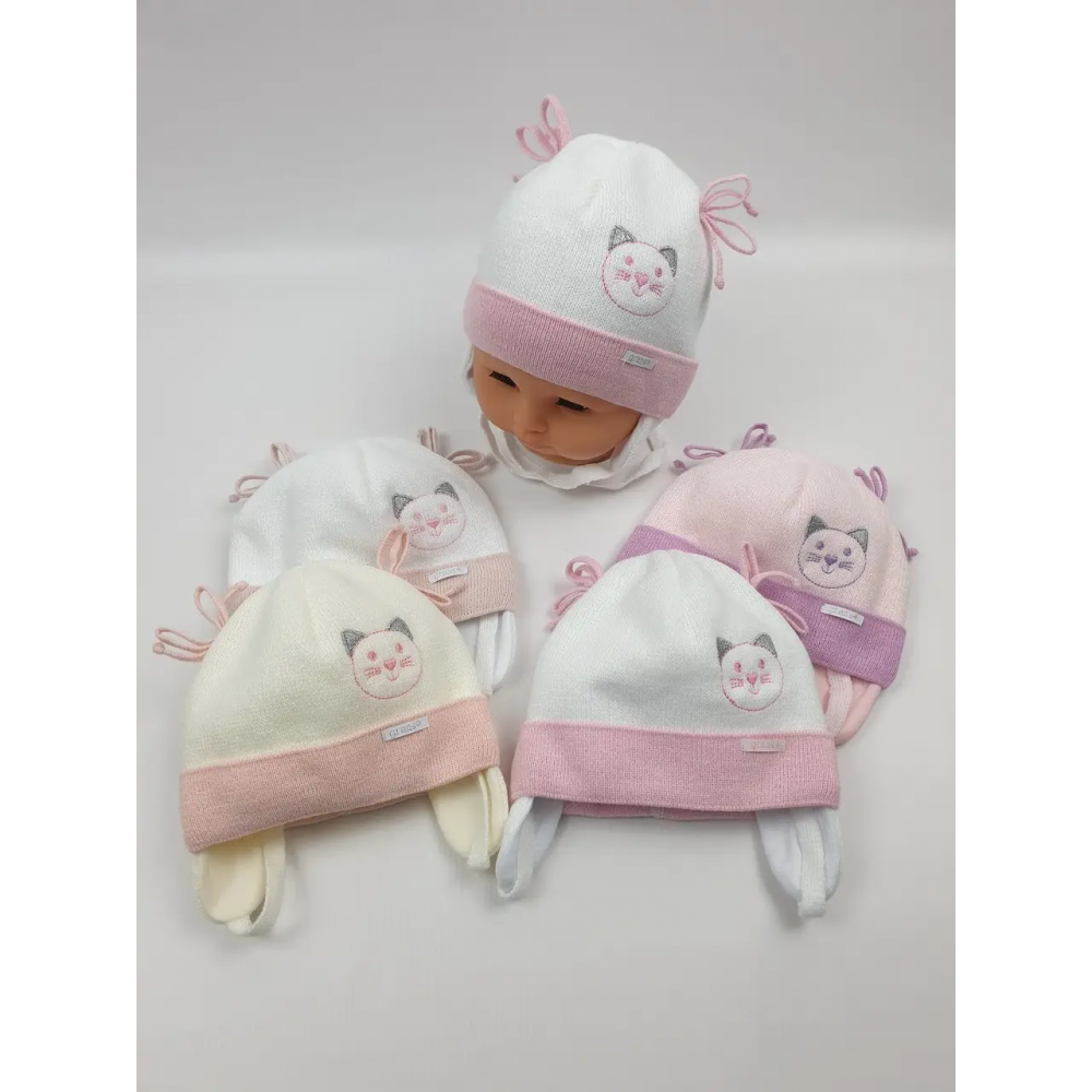 Дитячі польські демісезонні в`язані шапки на трикотажній підкладці для дівчат оптом, р.38-40 (Польша)