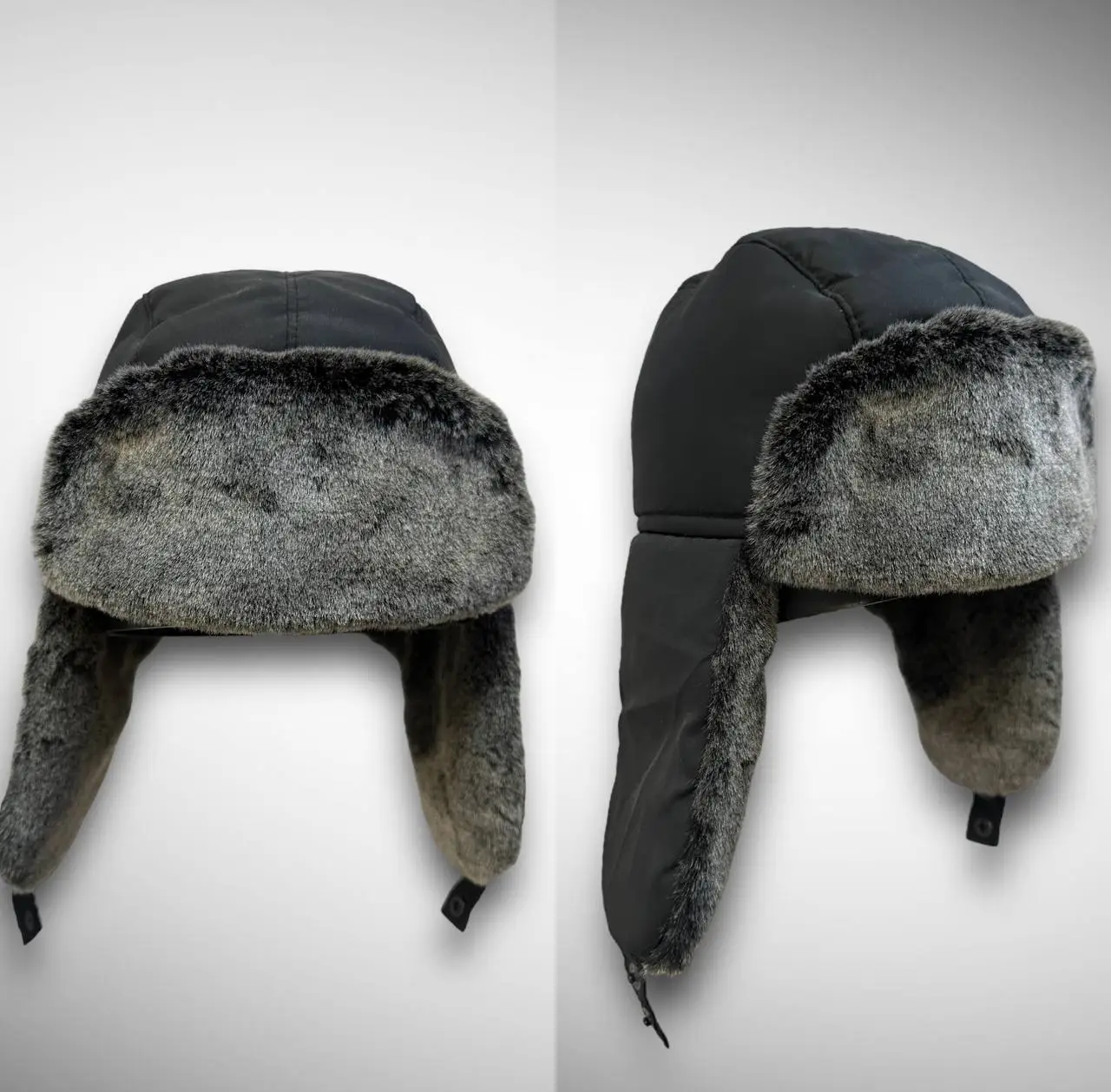 Уши шапки не на привычных завязках, а на двойной кнопке. Опустив их вниз и застегнув, мы полностью закроем уши, шею и затылок