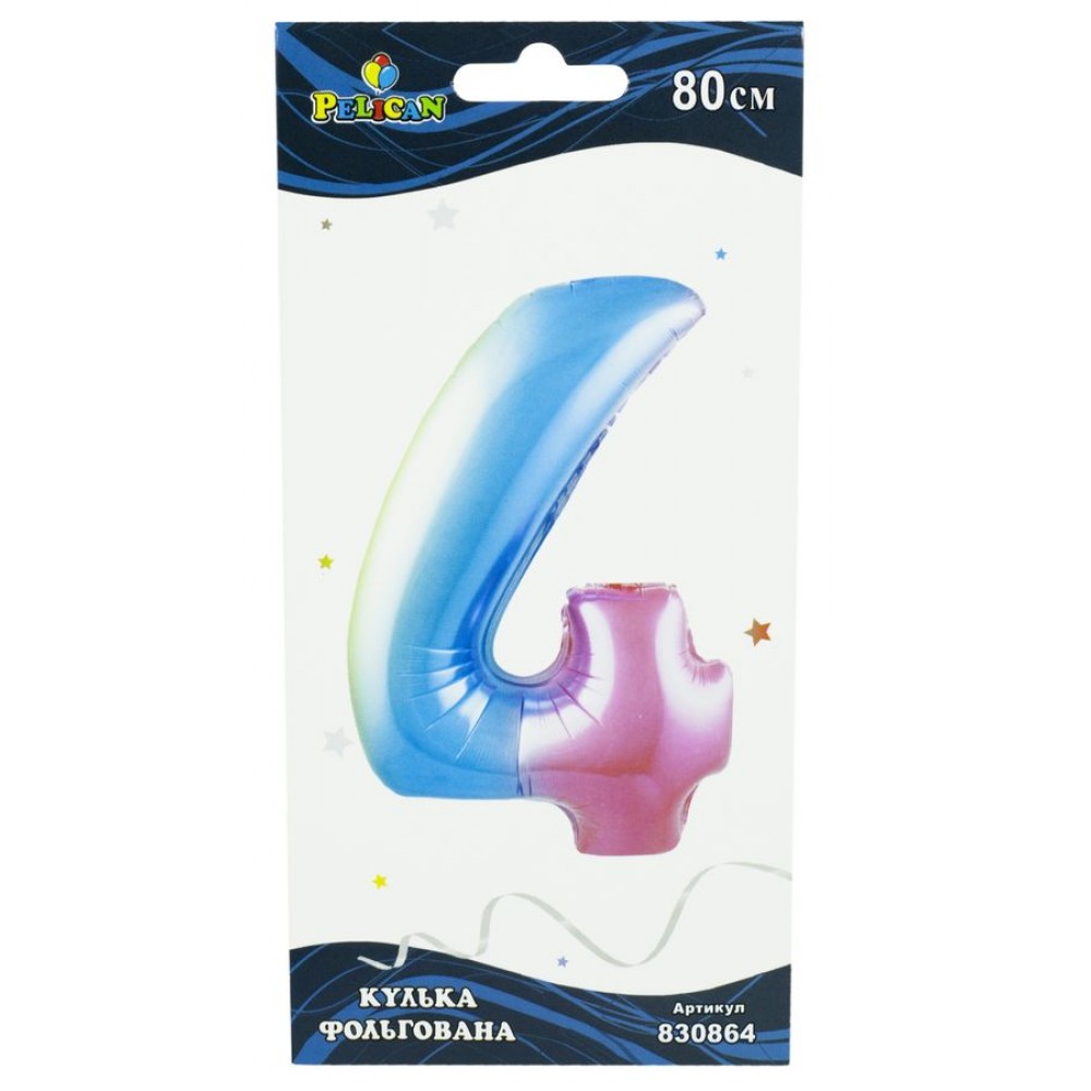 Шарик фольгированный цифра с короной на подставке "4" серебро 32"(80cm) Pelican