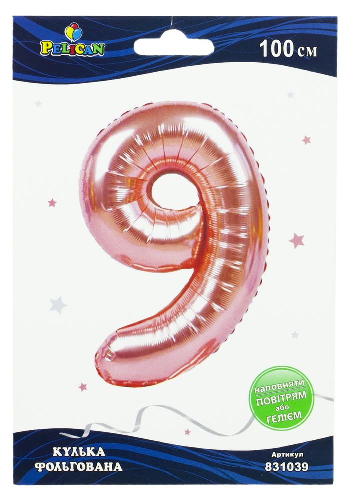 Цифра фольгированная Pelican, "9" РОЗОВОЕ ЗОЛОТО золото 100см Розовый Pelican (831039)