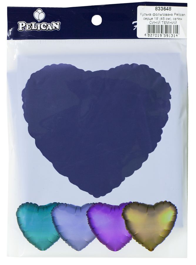 Шарик фольгированный PELICAN сердце 18 "(45см) сатин синий темый (5шт) Разноцветный Pelican (833648)