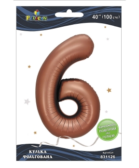 Шарик фольгированный цифра "6" коричневая 40"(100cm) Pelican Коричневый Pelican (831126)