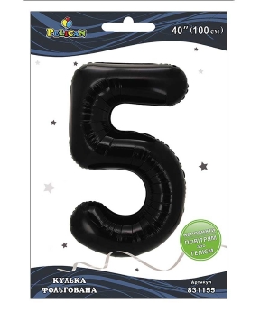 Шарик фольгированный цифра "5" черная 40"(100cm) Pelican Черный Pelican (831155)