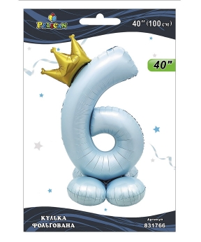 Шарик фольгированный цифра с короной на подставке "6" голубая 40"(100cm) Pelican Голубой Pelican (831766)