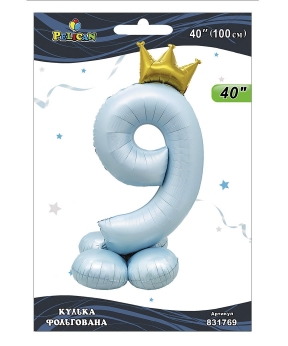Шарик фольгированный цифра с короной на подставке "9" голубая 40"(100cm) Pelican Голубой Pelican (831769)