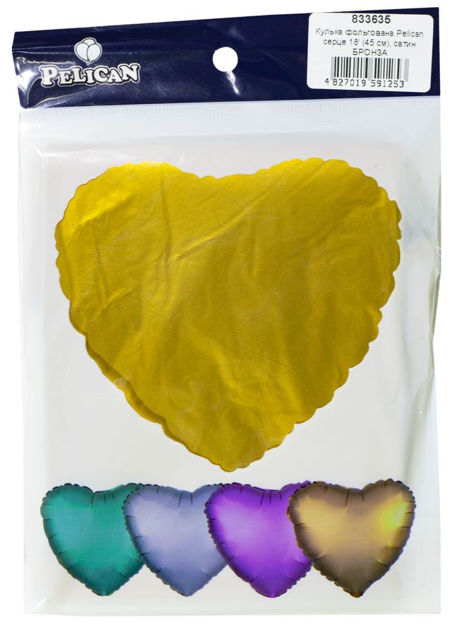 Шарик фольгированный PELICAN сердце 18 "(45см) сатин бронза(5шт) Желтый Pelican (833635)