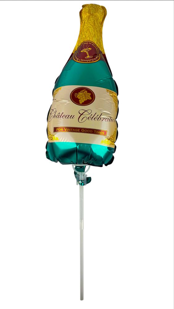 Шарик надувной фольгированный mini Myler, Шампанское + палка пластиковая 30см (BP10831)