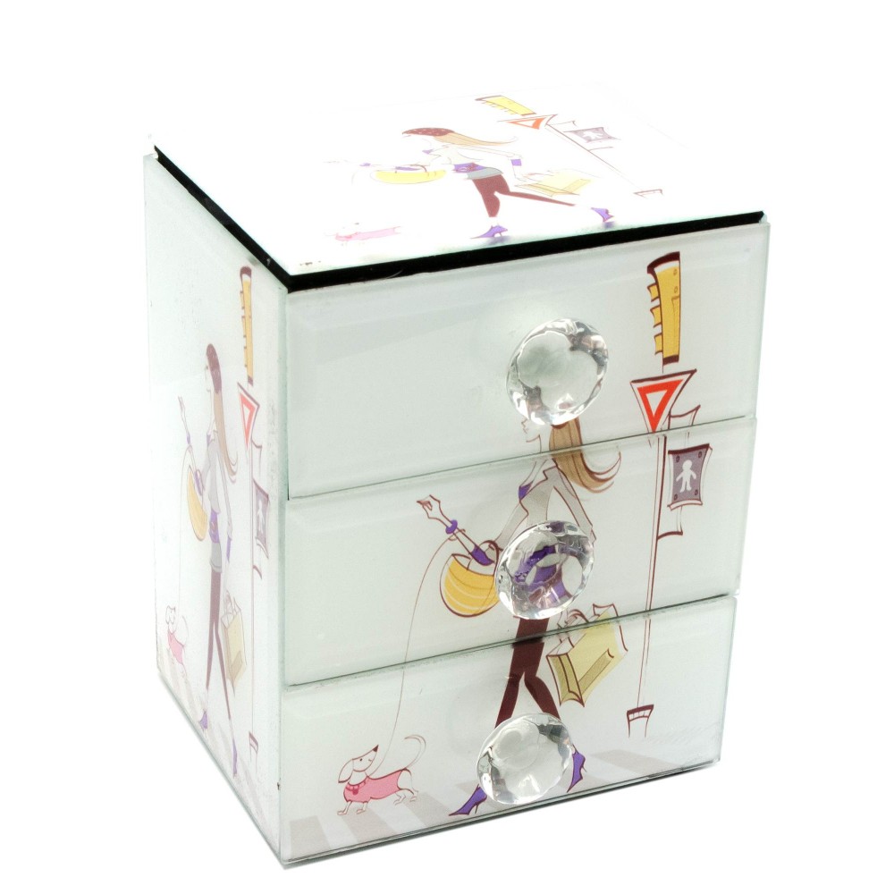 Шкатулка для украшений Девушка с собачкойс зеркальцем стеклянная (15х12х9,5 см)