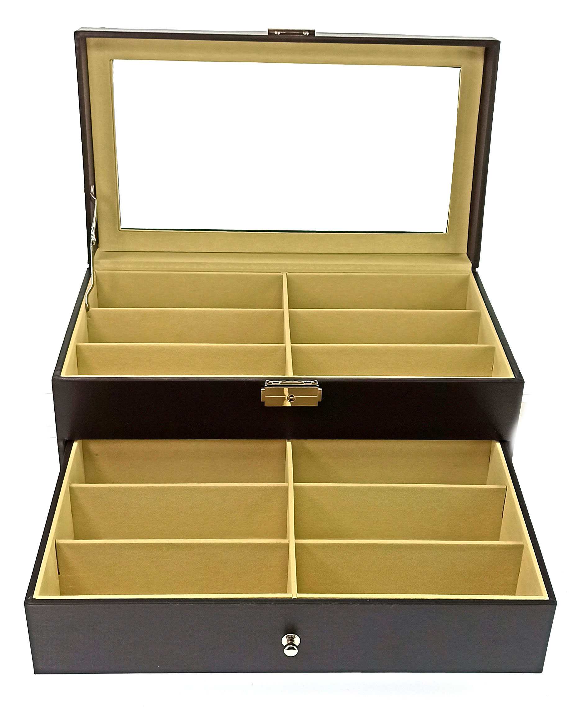 Красивый и удобный горизонтальный органайзер будет бережно хранить коллекцию очков и надежно защищать от всевозможных механических повреждений.