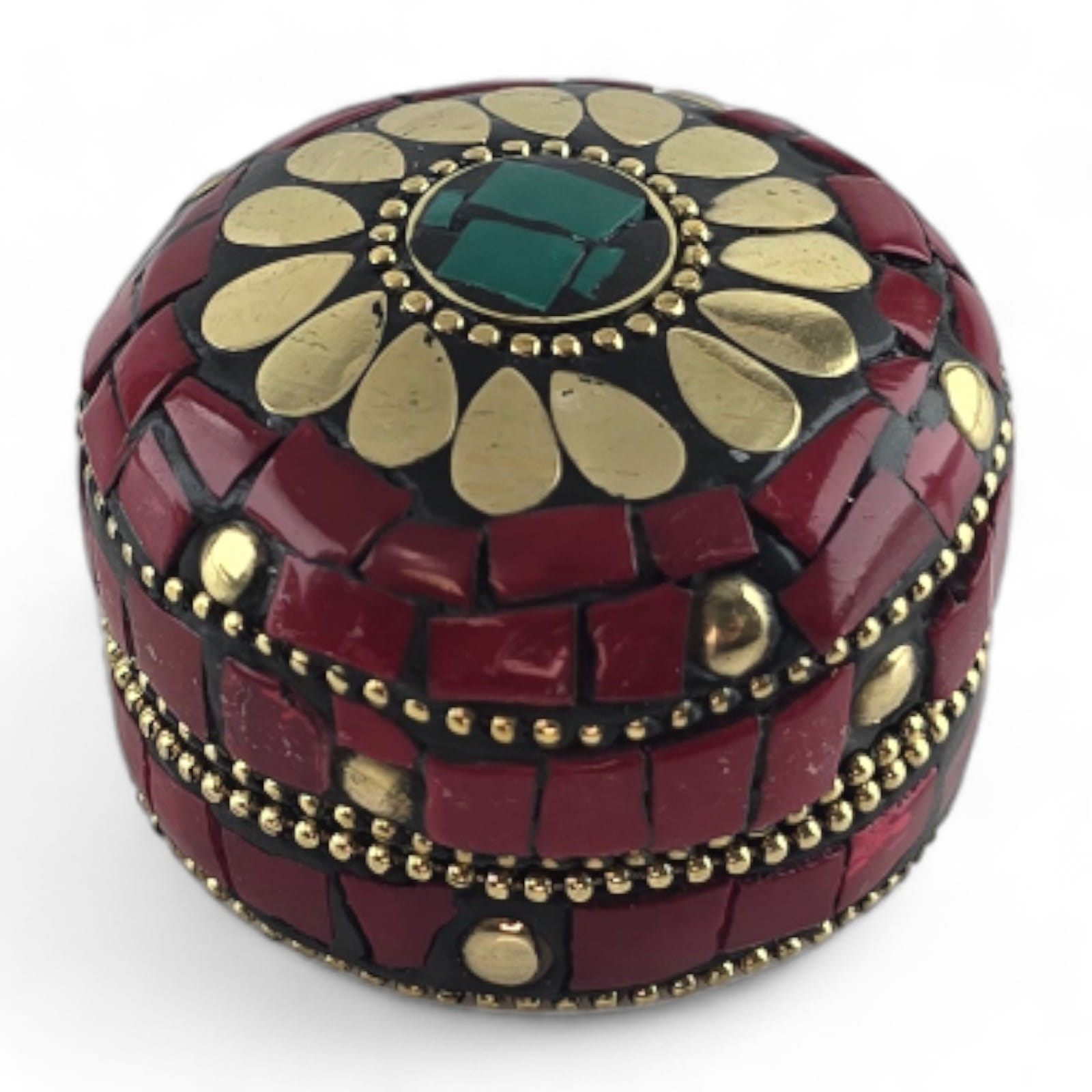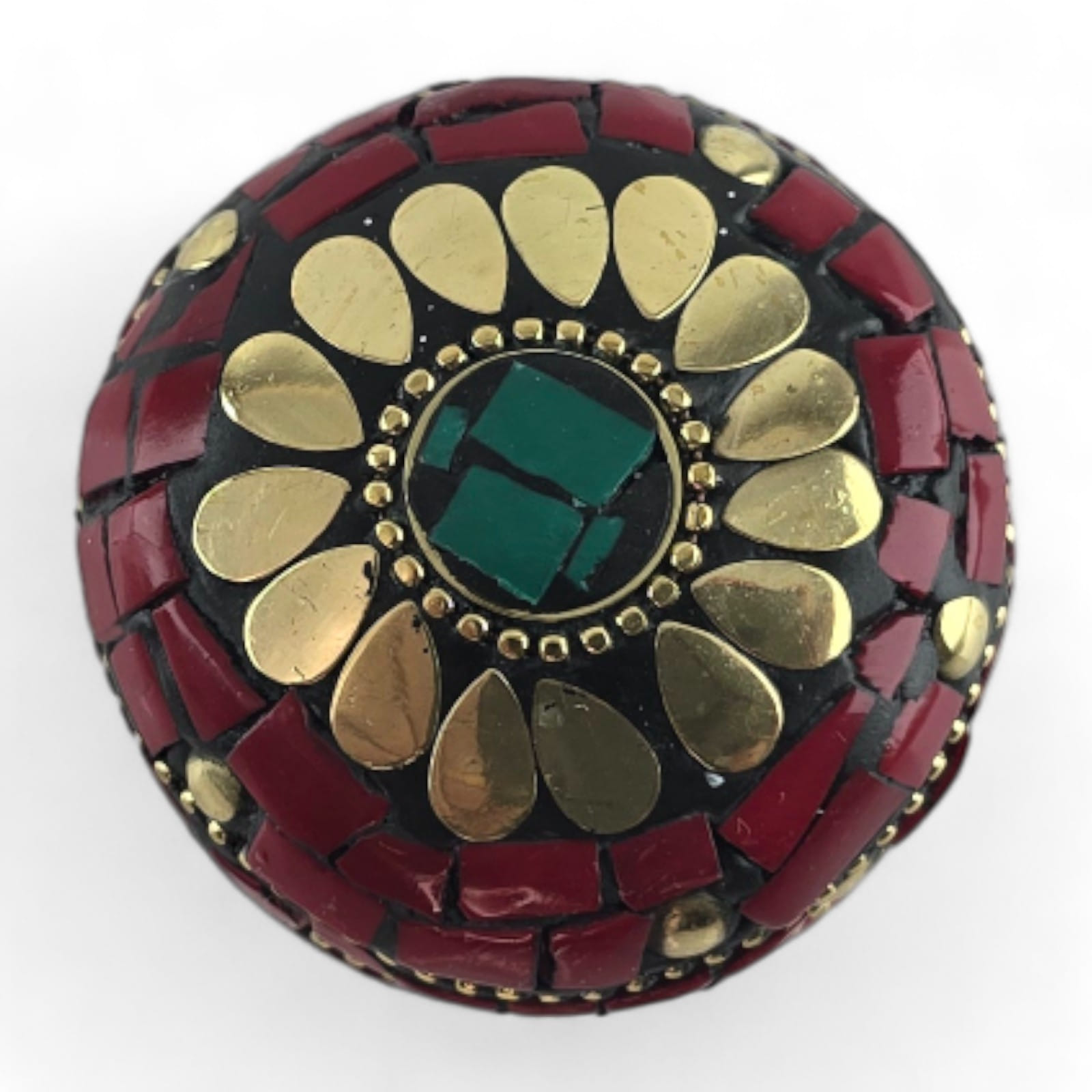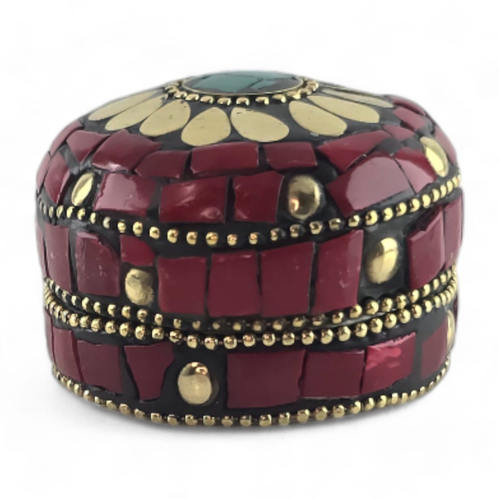 Шкатулка металлическая с кораллами и бирюзой ( h-3,2; d-4,7 см)