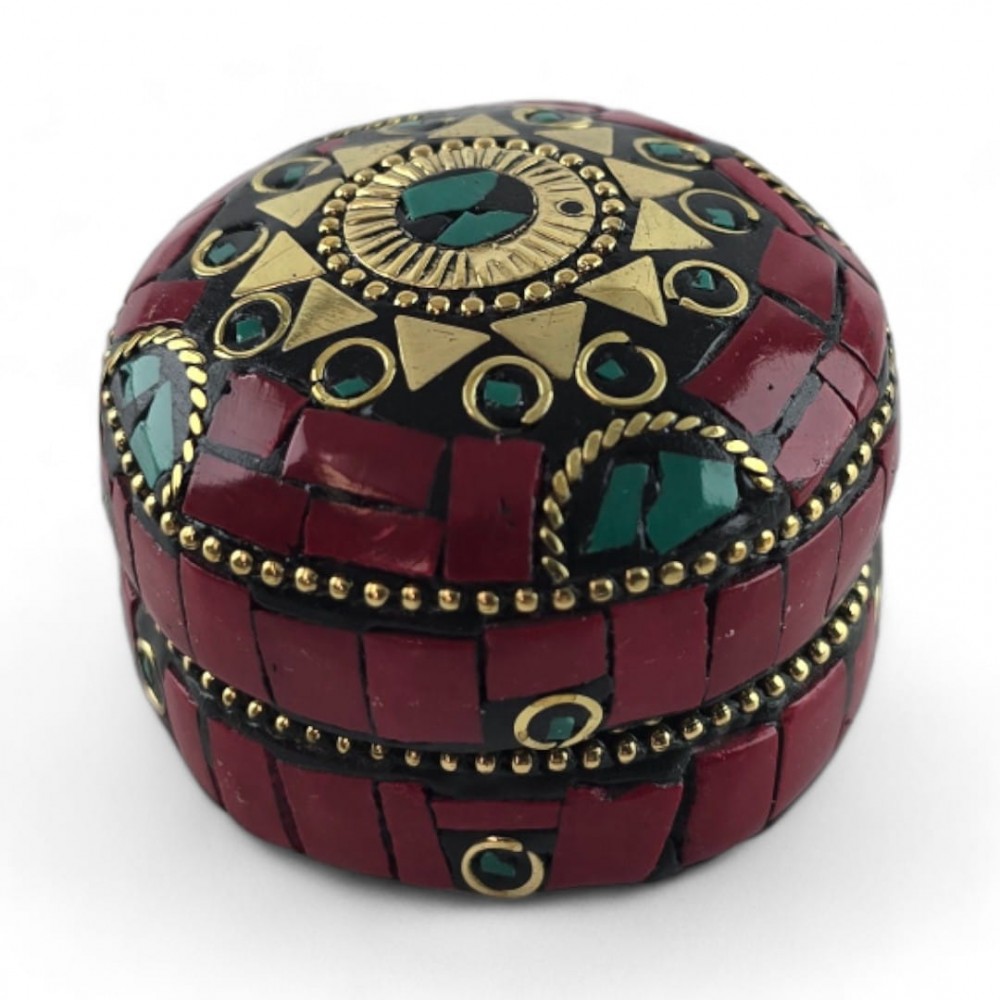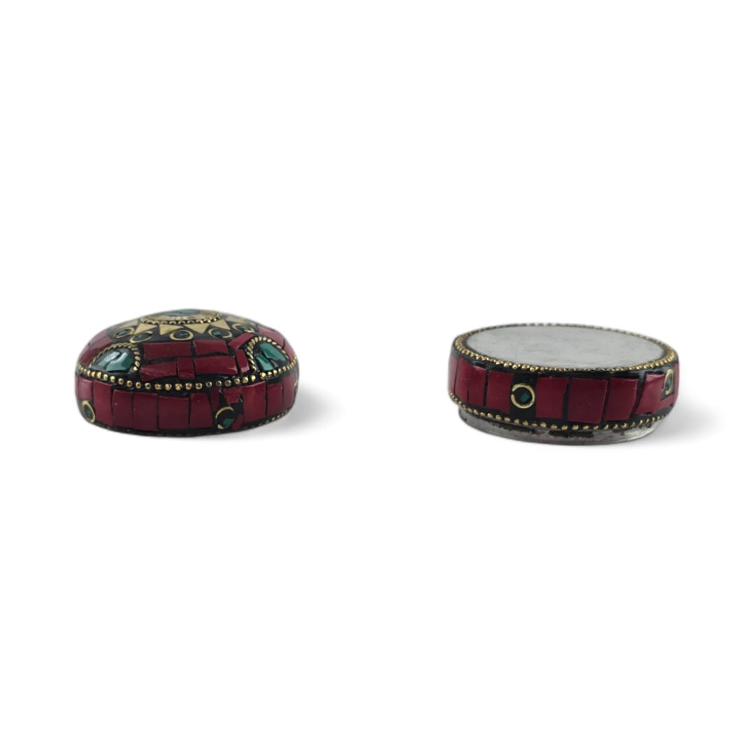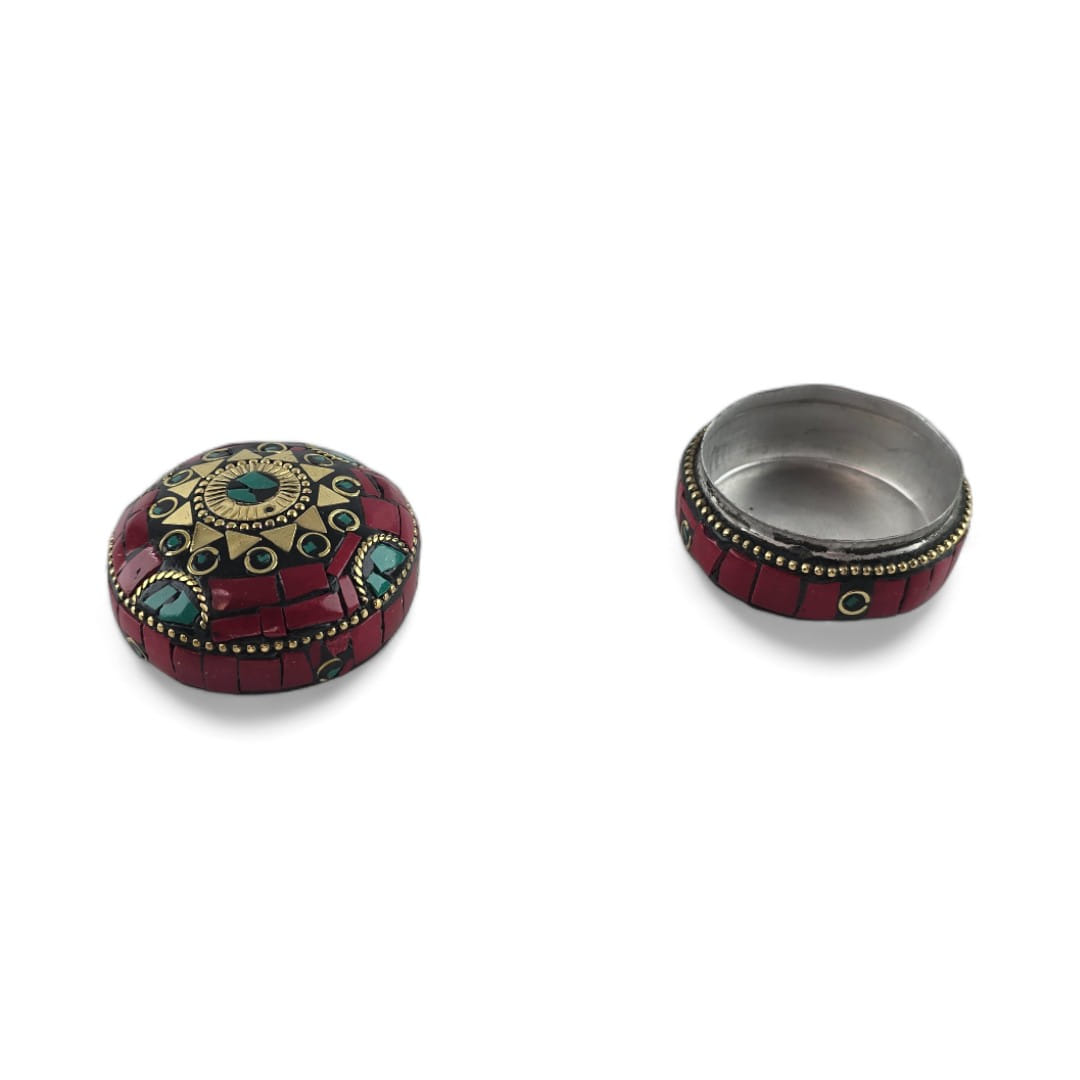 Шкатулка металлическая с кораллами и бирюзой ( h-3,2; d-4,7 см)