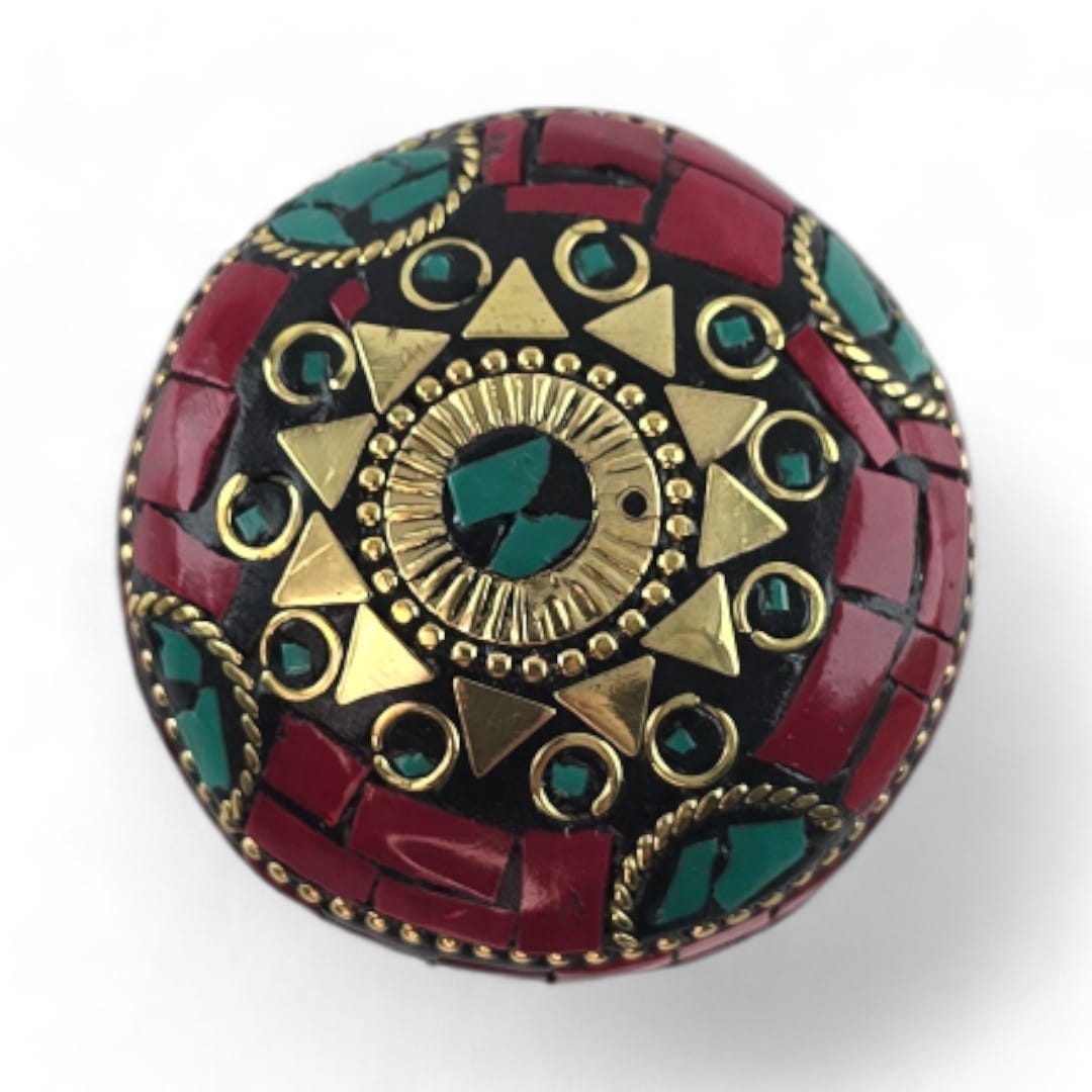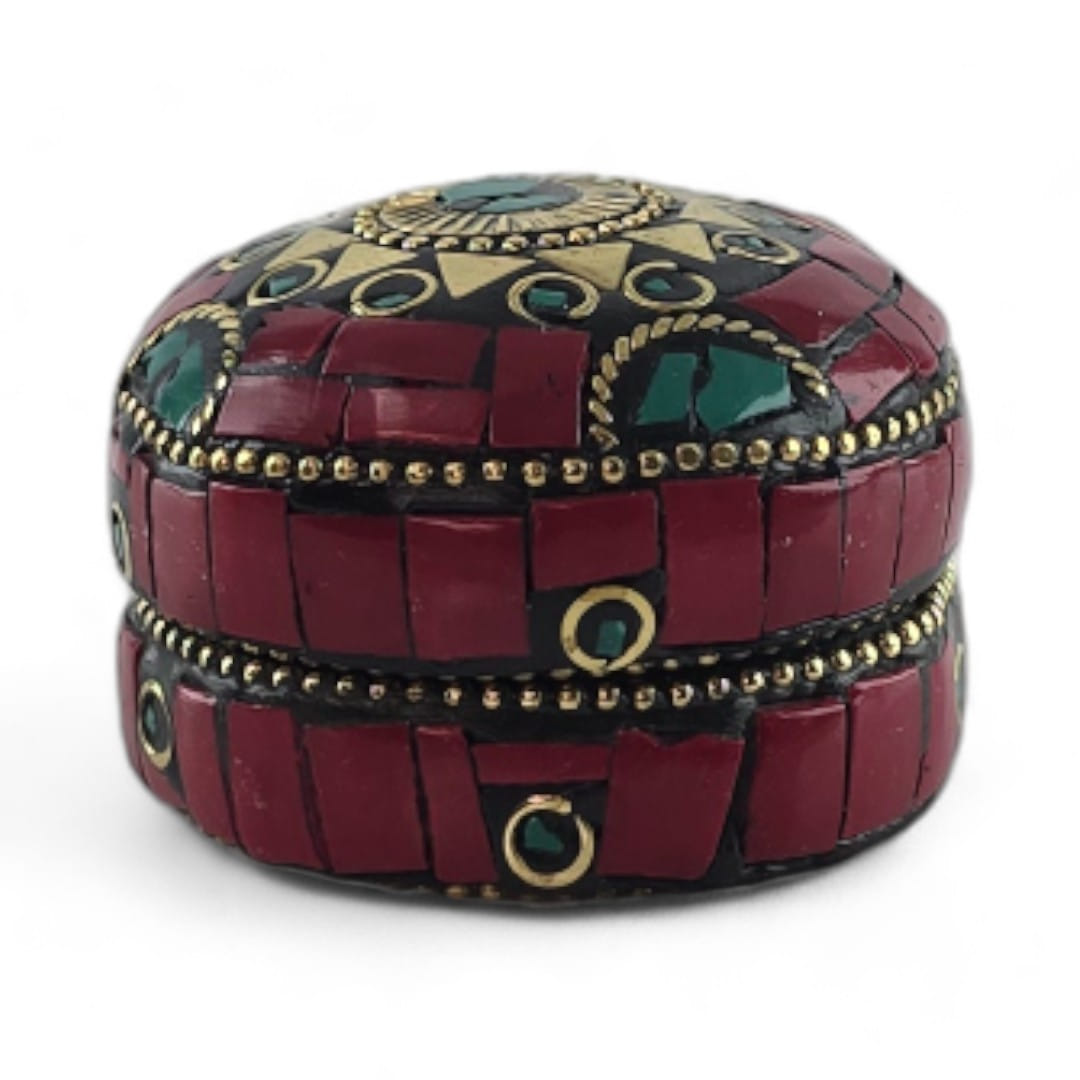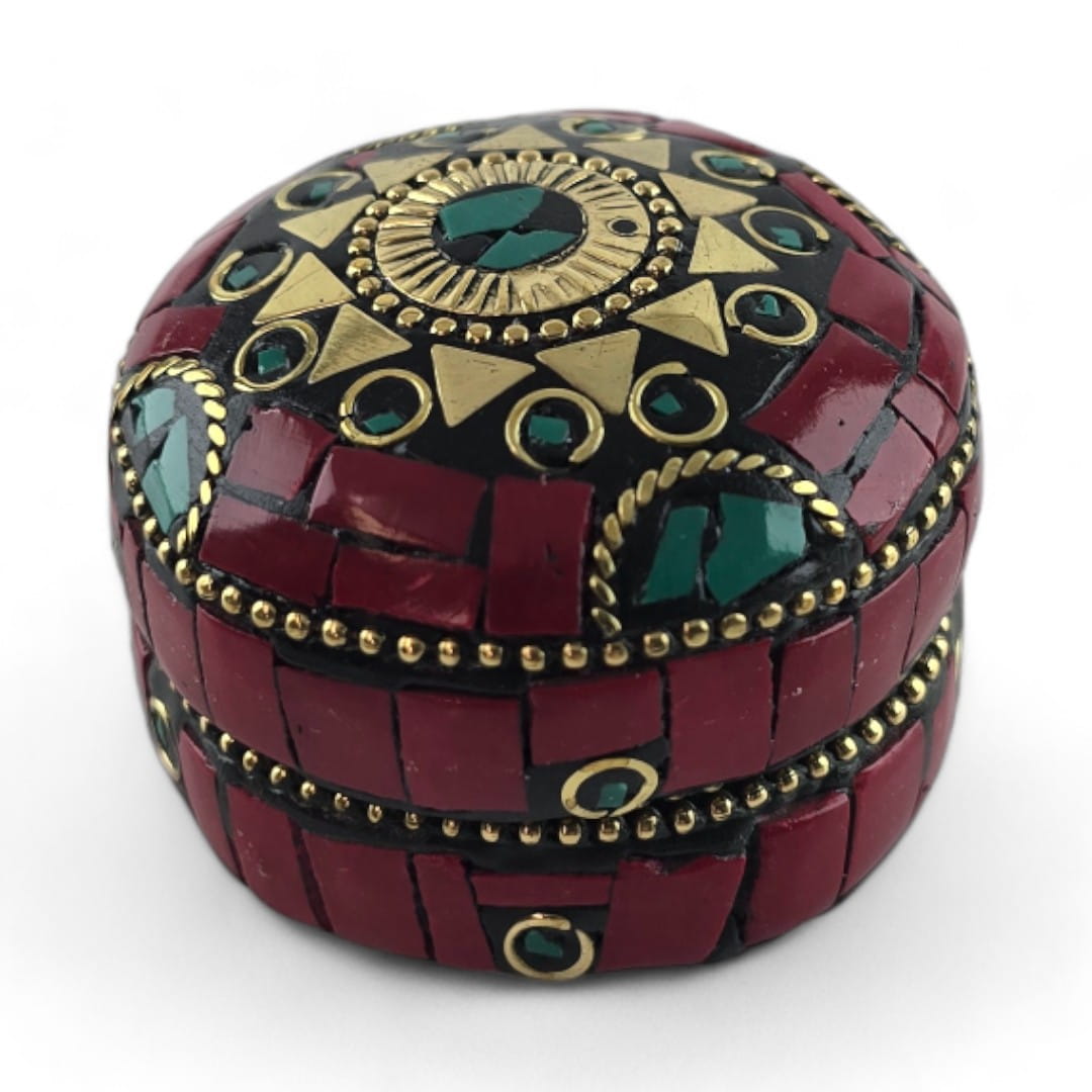 Шкатулка металлическая с кораллами и бирюзой ( h-3,2; d-4,7 см)