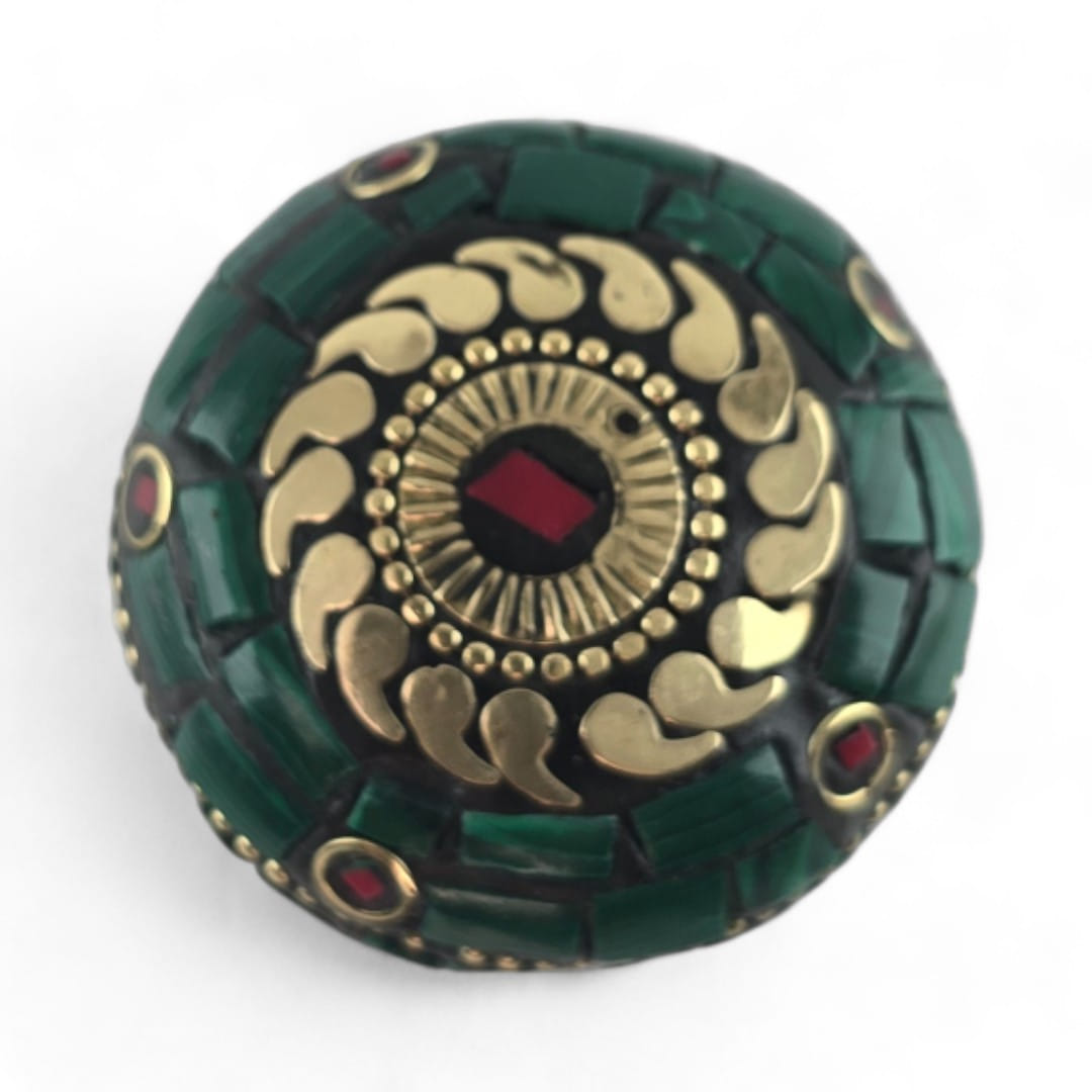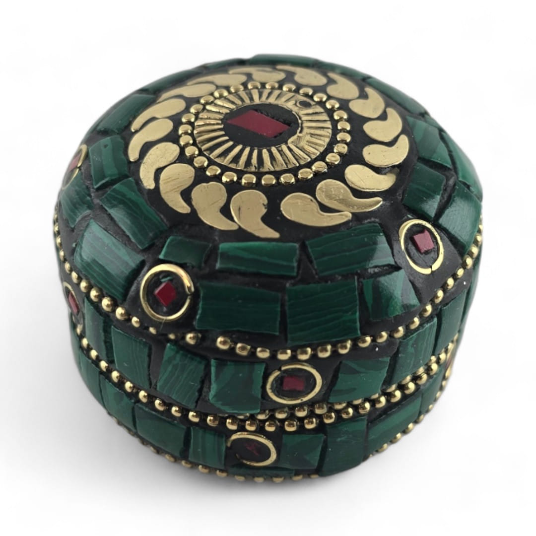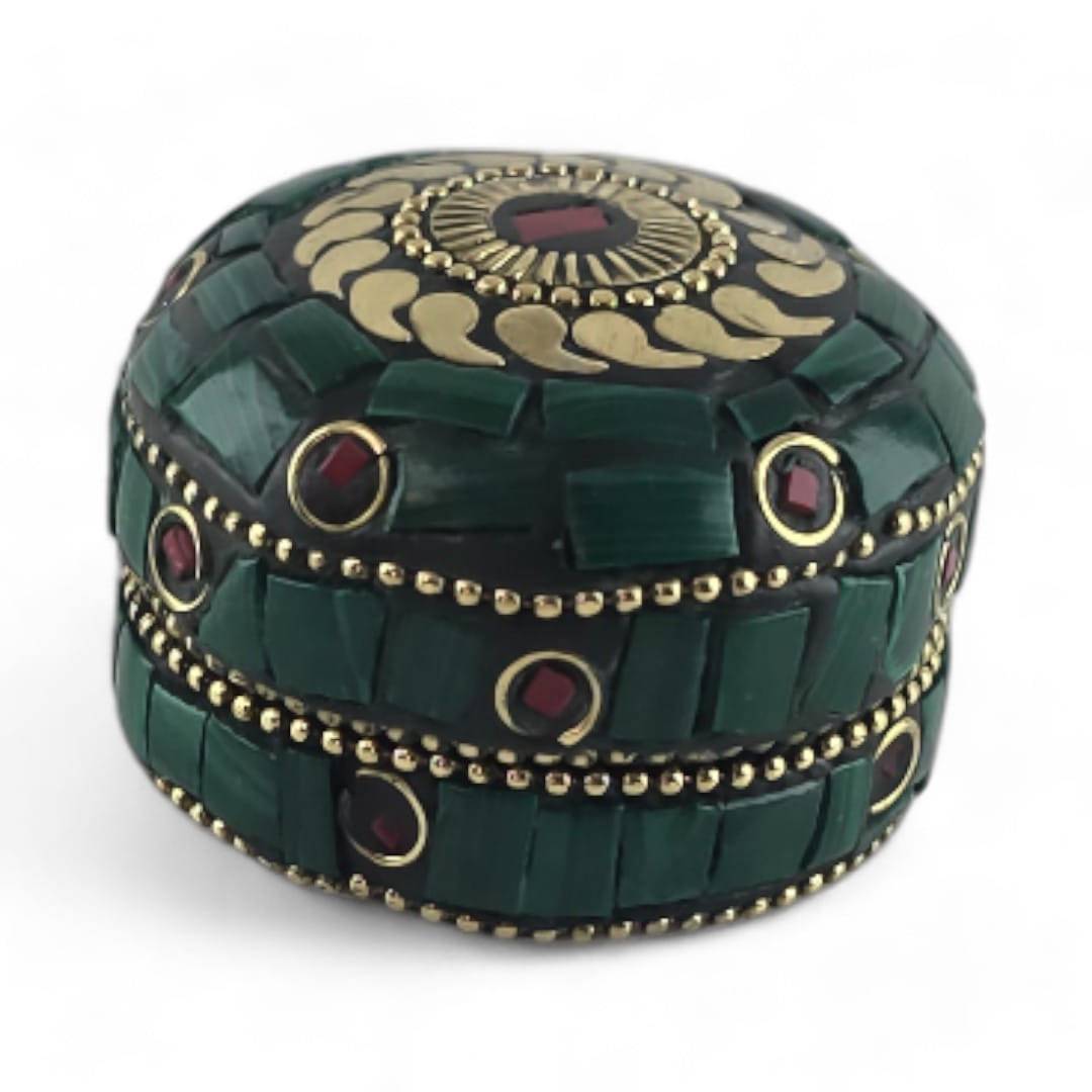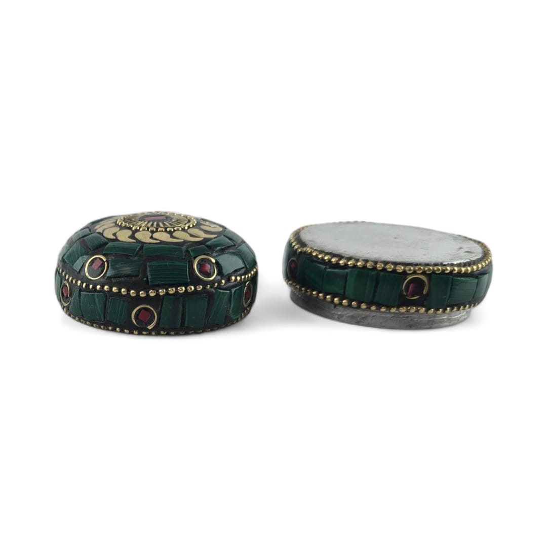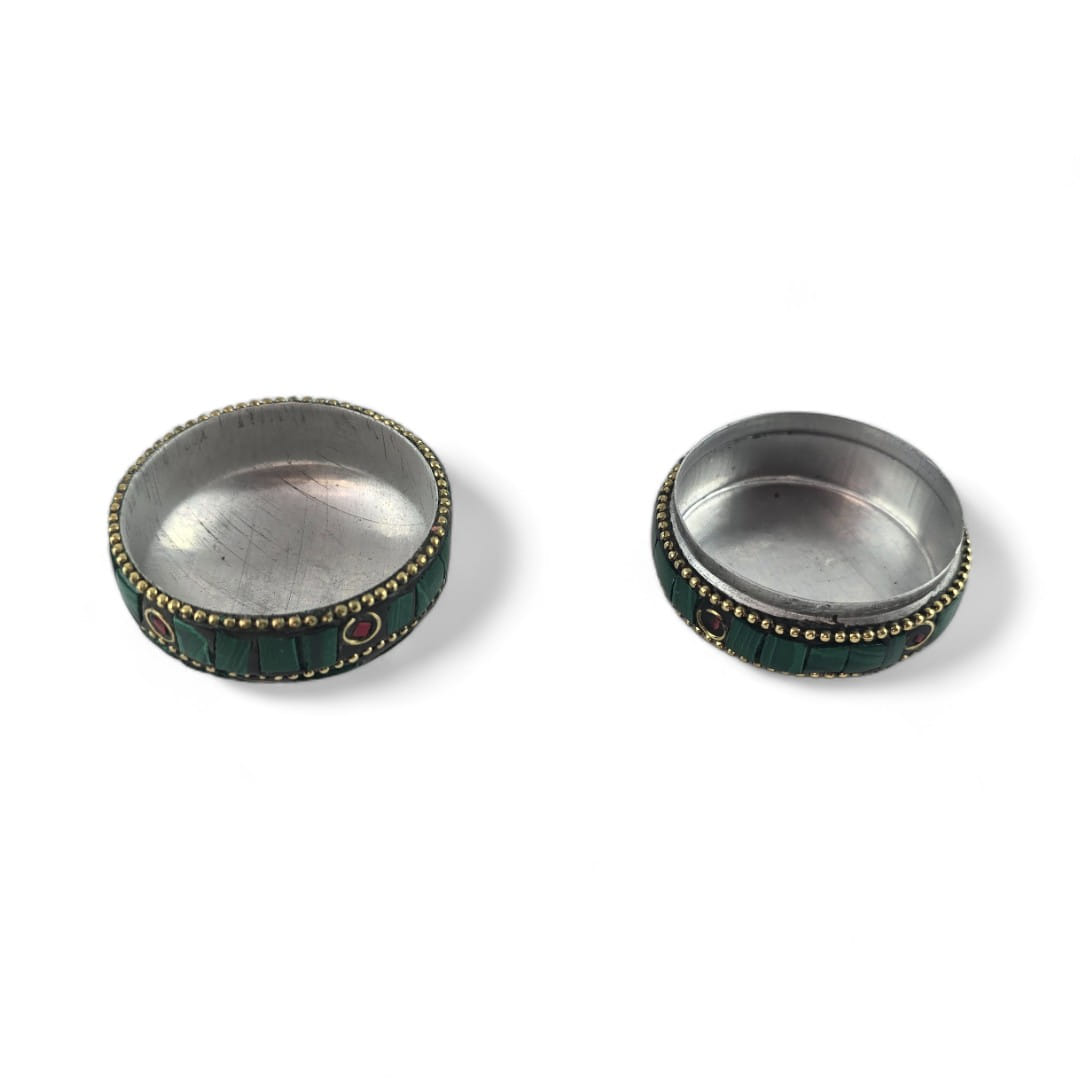 Шкатулка металлическая с кораллами и бирюзой ( h-3,2; d-4,7 см)