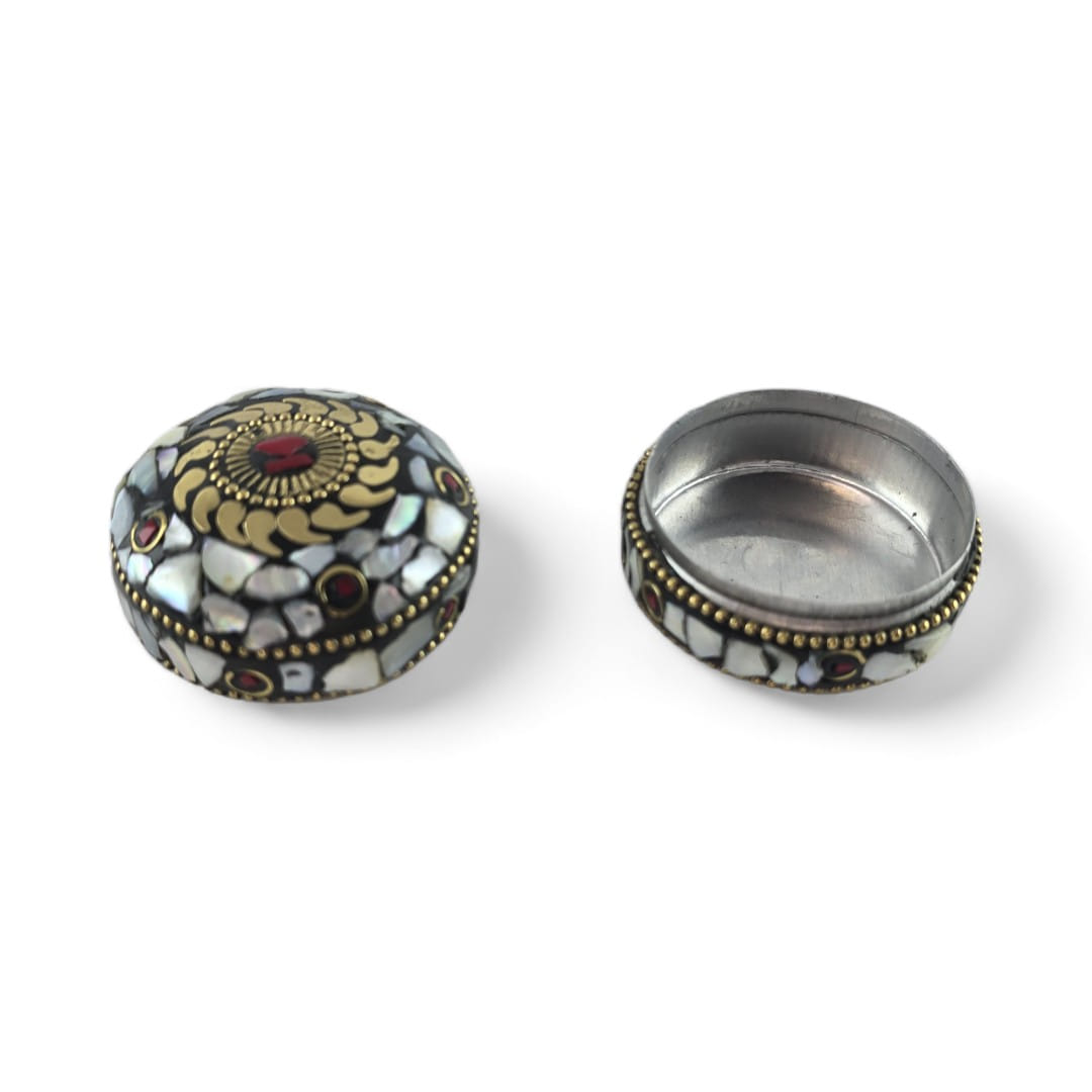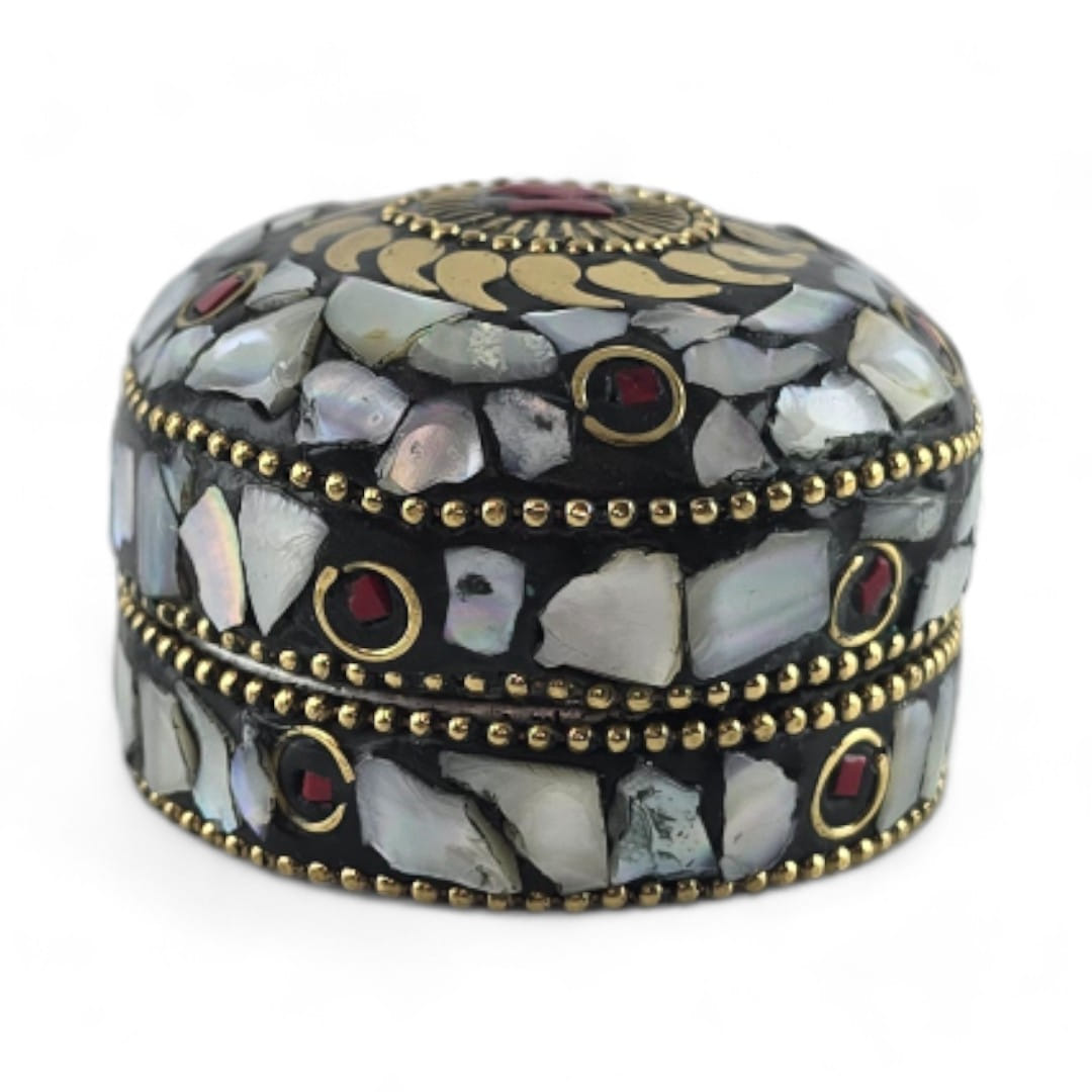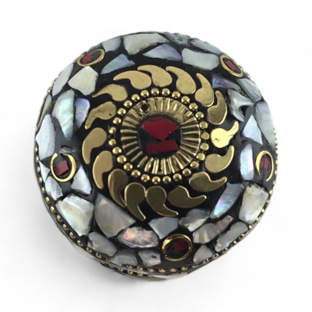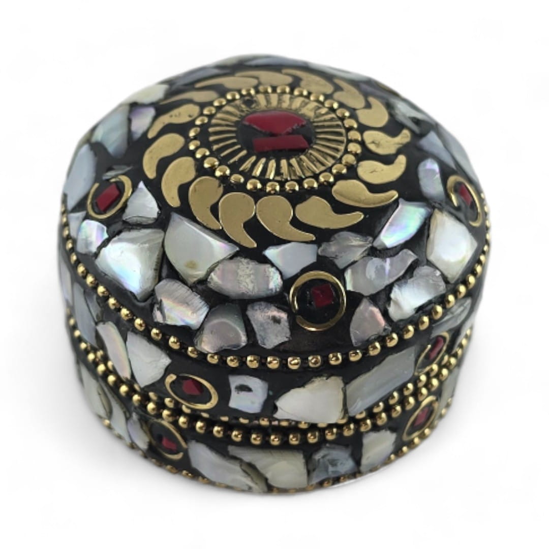 Шкатулка металлическая с перламутром и кораллами ( h-3,2; d-4,7 см)