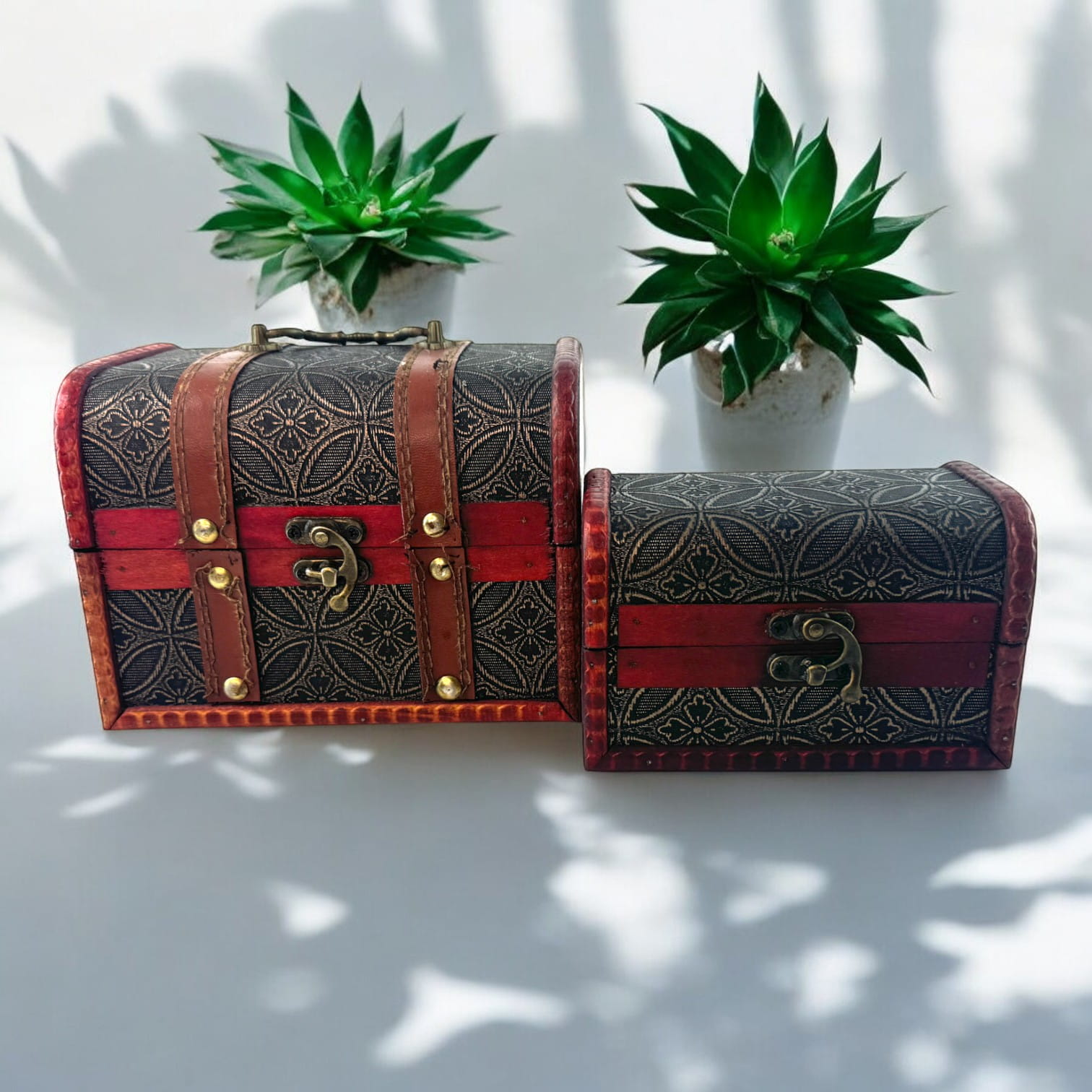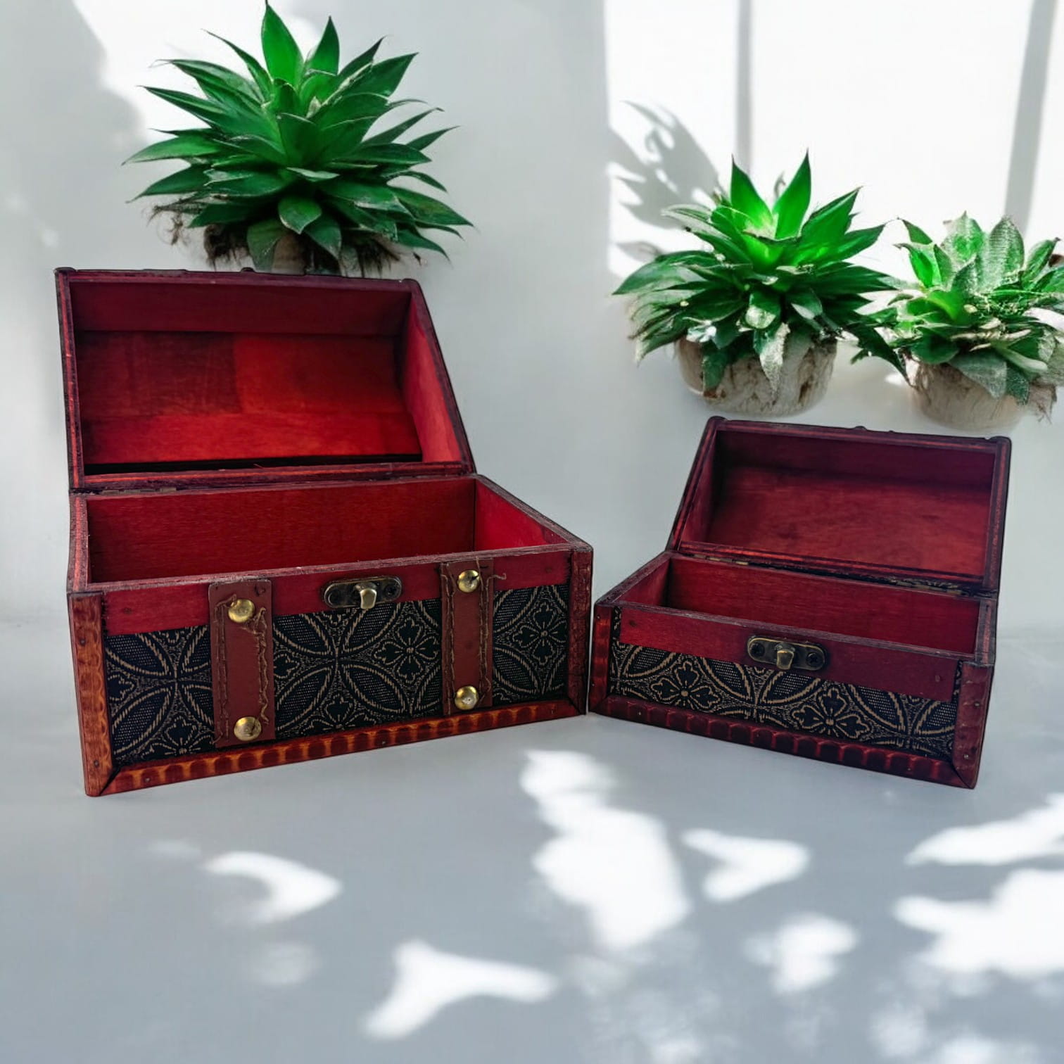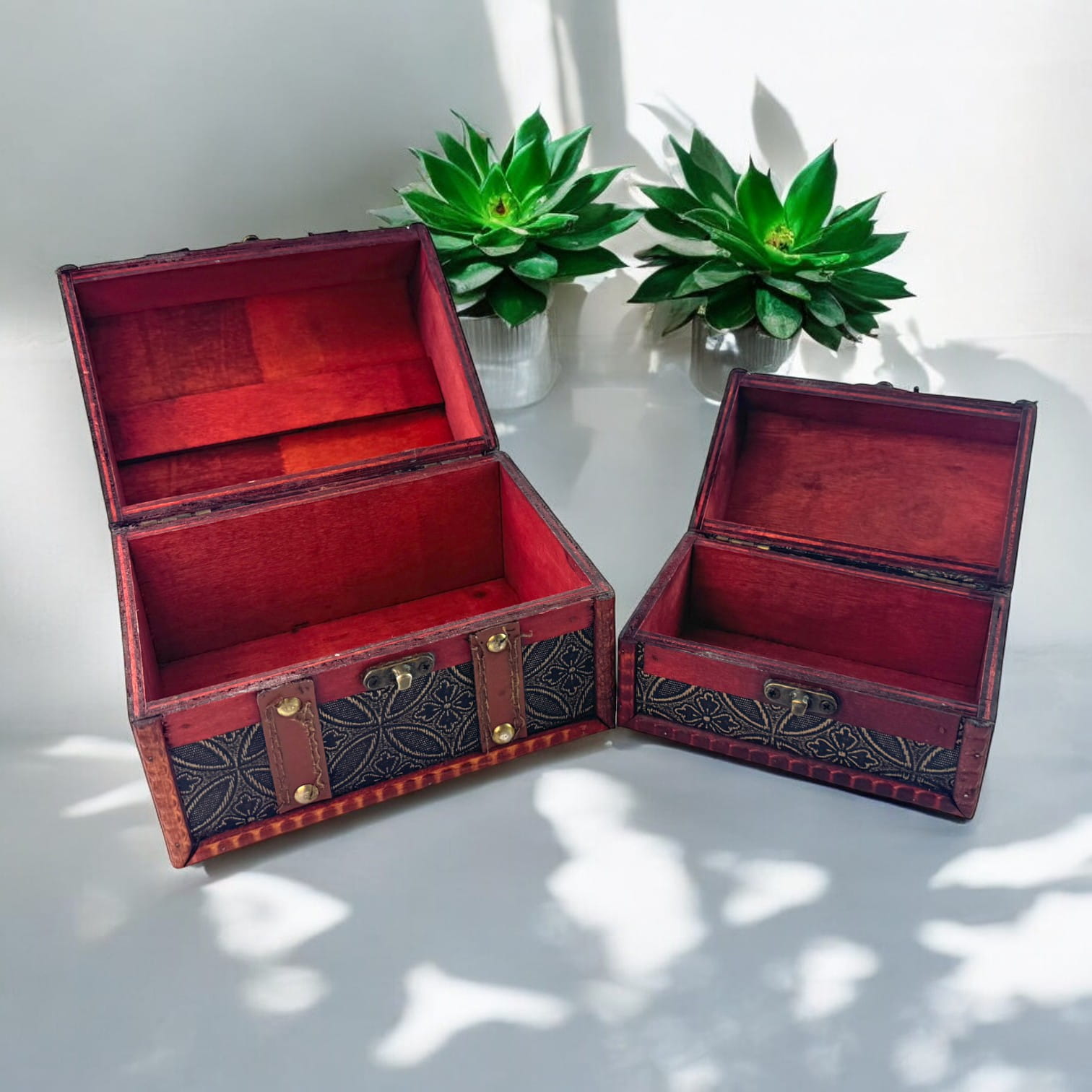 Эти сундучки выполнены из дерева с изысканным декором, придающим изделиям особую элегантность. Они оснащены надёжными застёжками, благодаря чему их содержимое всегда будет в безопасности. Удобные размеры позволяют использовать их как для хранения дома, так и в качестве декоративных элементов. Дизайн в стиле ретро и резные вставки добавляют сундучкам особого шарма.