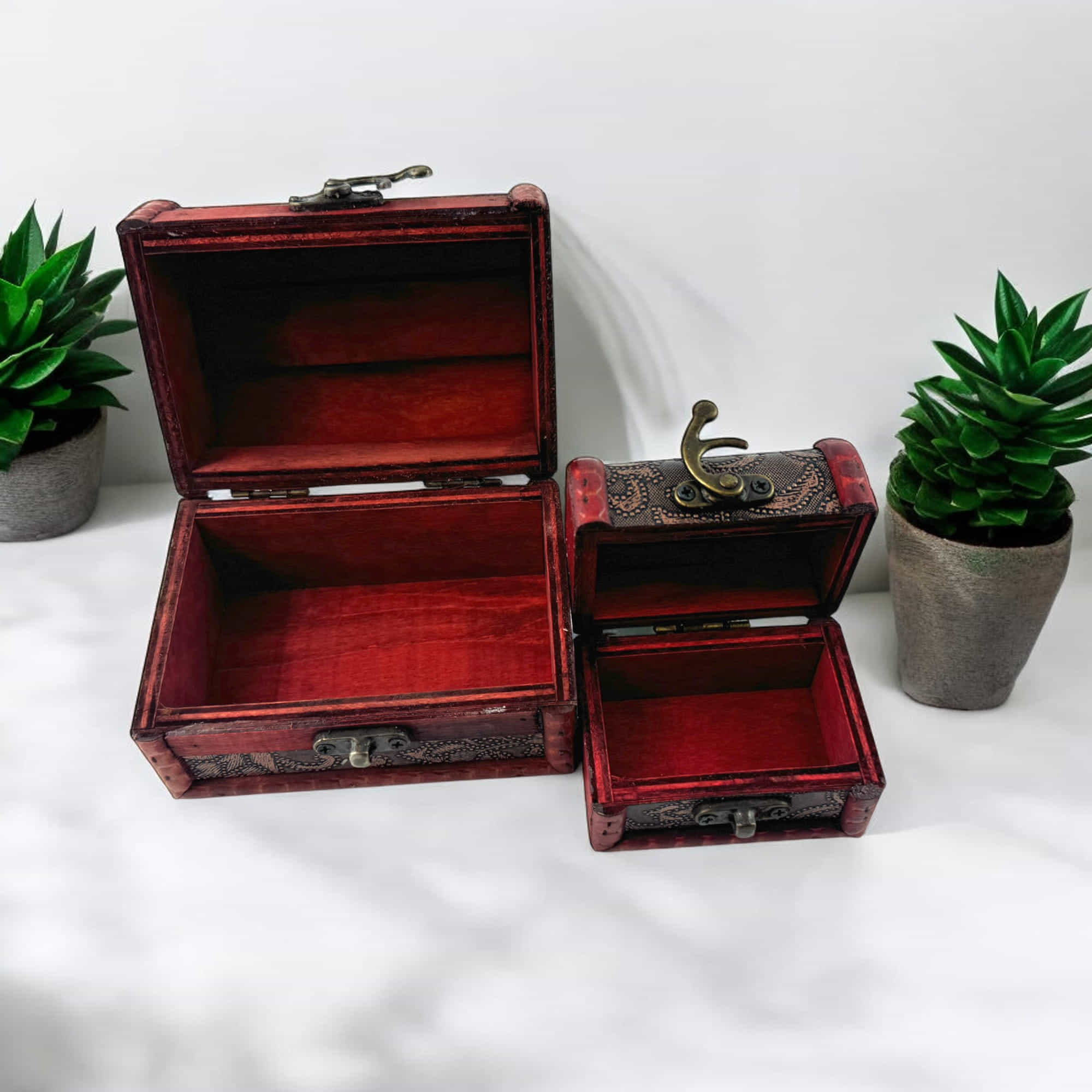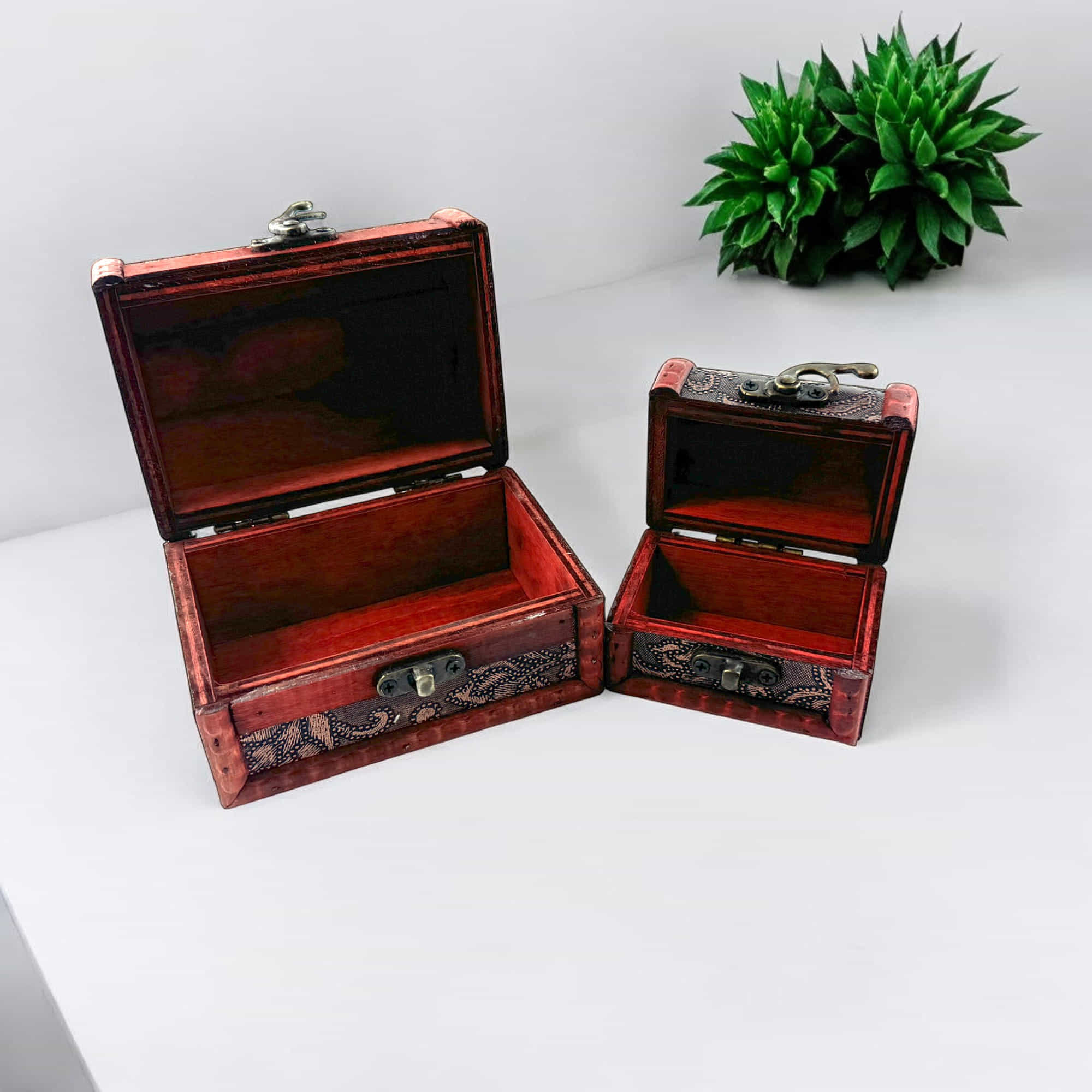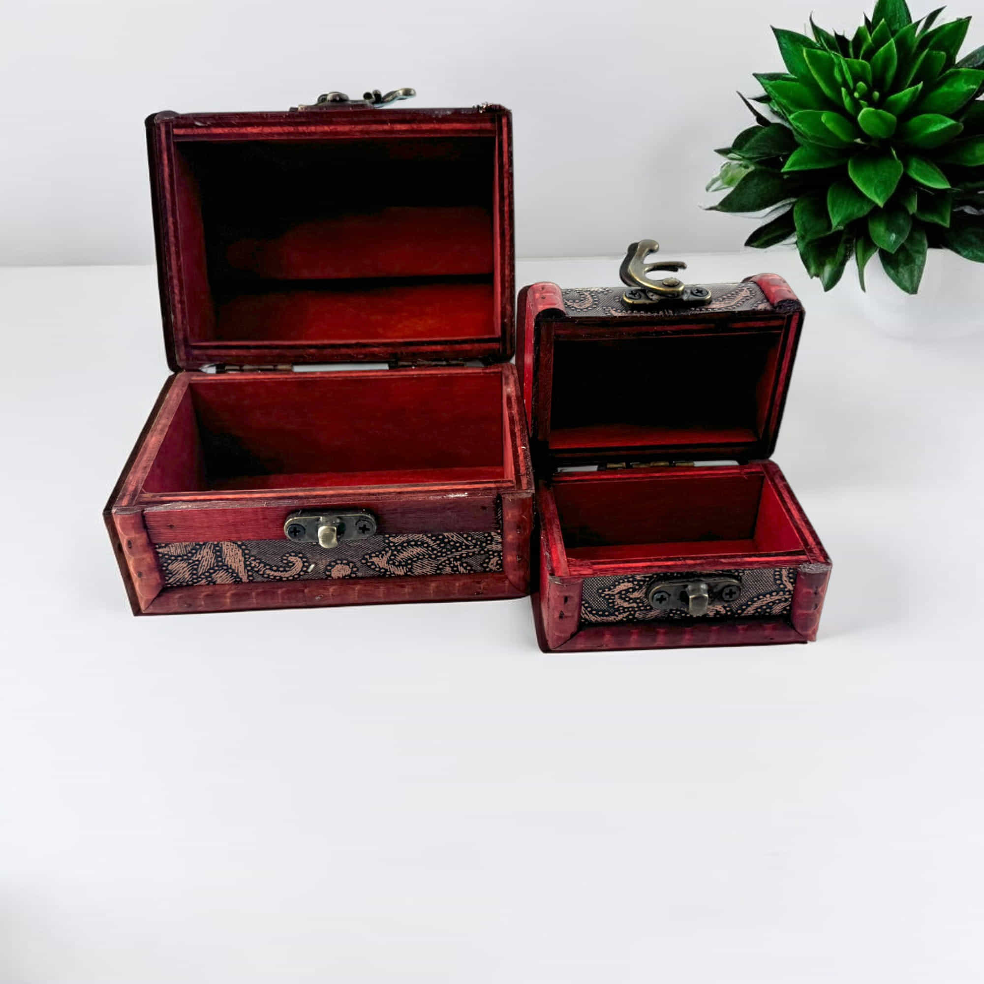 Эти сундучки выполнены из дерева с изысканным декором, придающим изделиям особую элегантность. Они оснащены надёжными застёжками, благодаря чему их содержимое всегда будет в безопасности. Удобные размеры позволяют использовать их как для хранения дома, так и в качестве декоративных элементов. Дизайн в стиле ретро и резные вставки добавляют сундучкам особого шарма.