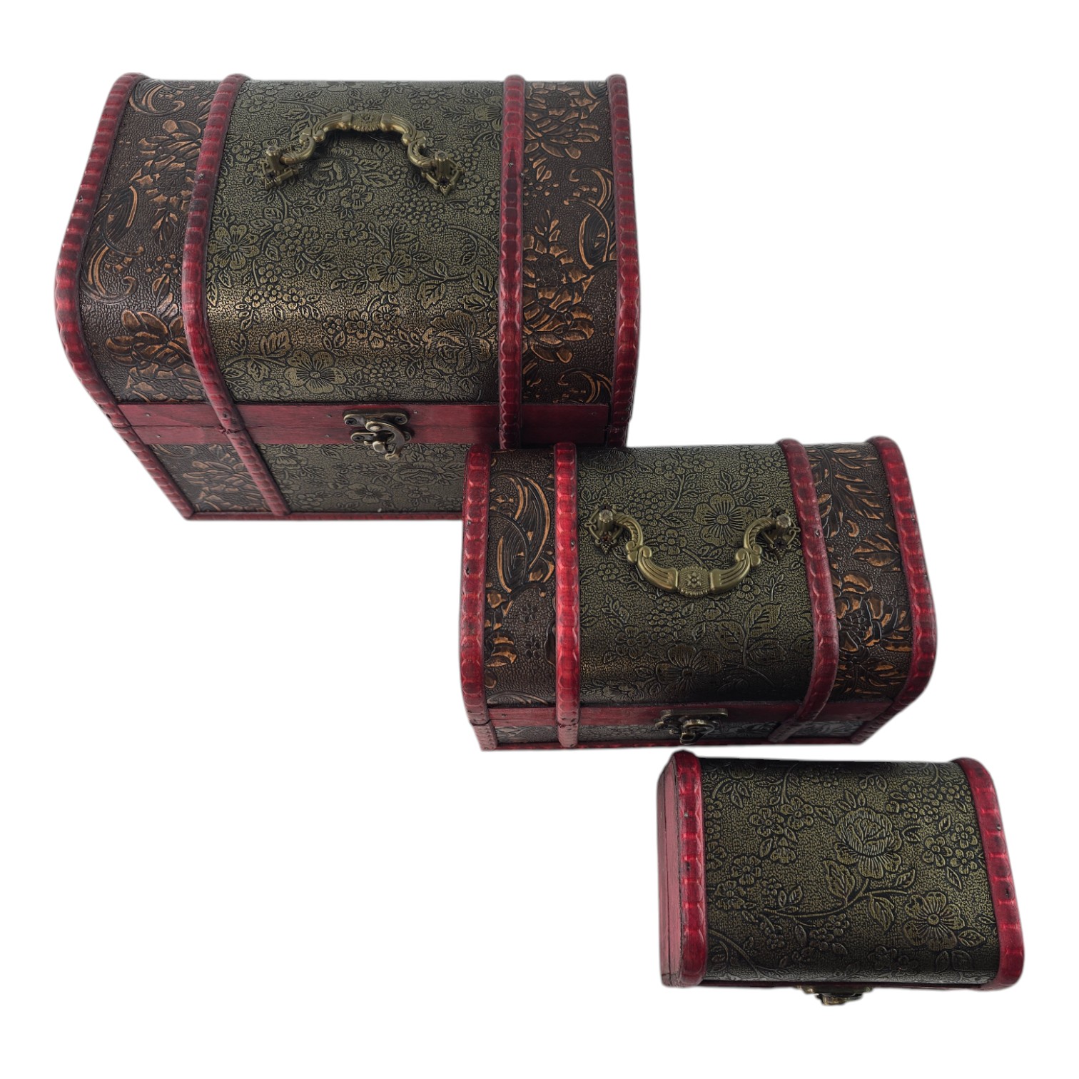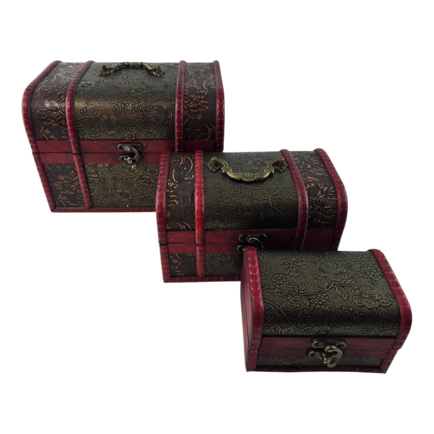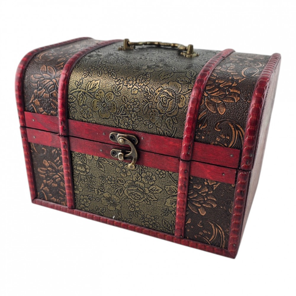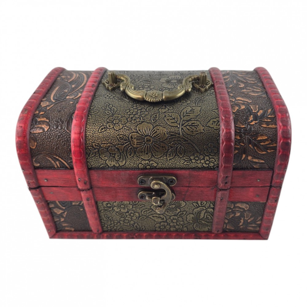 Набор из трех сундучков "Триада Тайн" — это не только великолепный элемент декора, но и практичное решение для хранения ваших сокровищ. Каждый сундучок выполнен из дерева с искусной декоративной отделкой, которая придает изделию винтажный и изысканный вид. Узорчатый рисунок и глубокий красный оттенок создают атмосферу тайны и роскоши. Сундучки идеально подходят для хранения украшений, писем, памятных сувениров и прочих дорогих сердцу вещей. Этот набор добавит нотку изящества вашему интерьеру и подчеркнет ваш вкус.