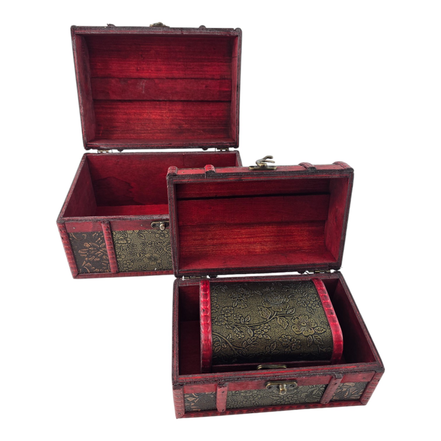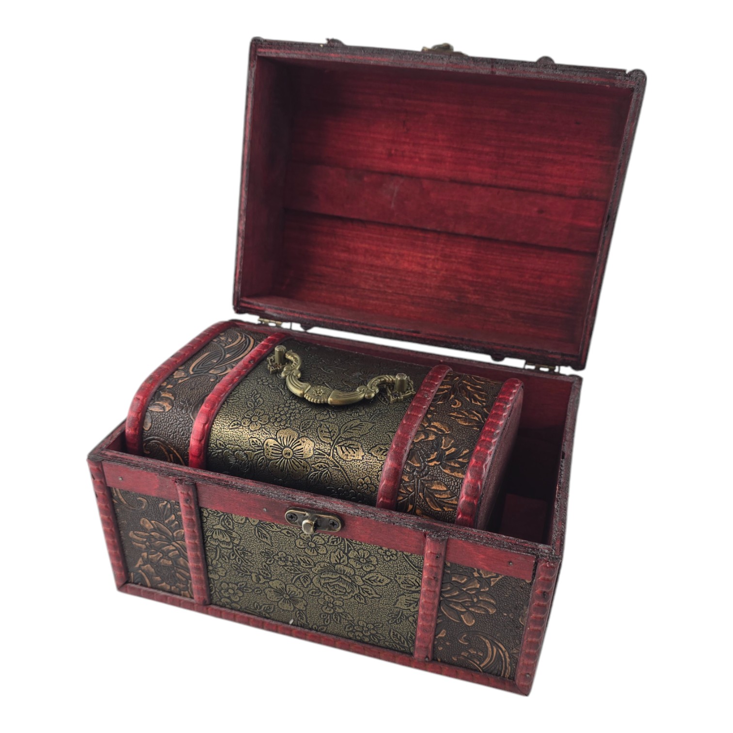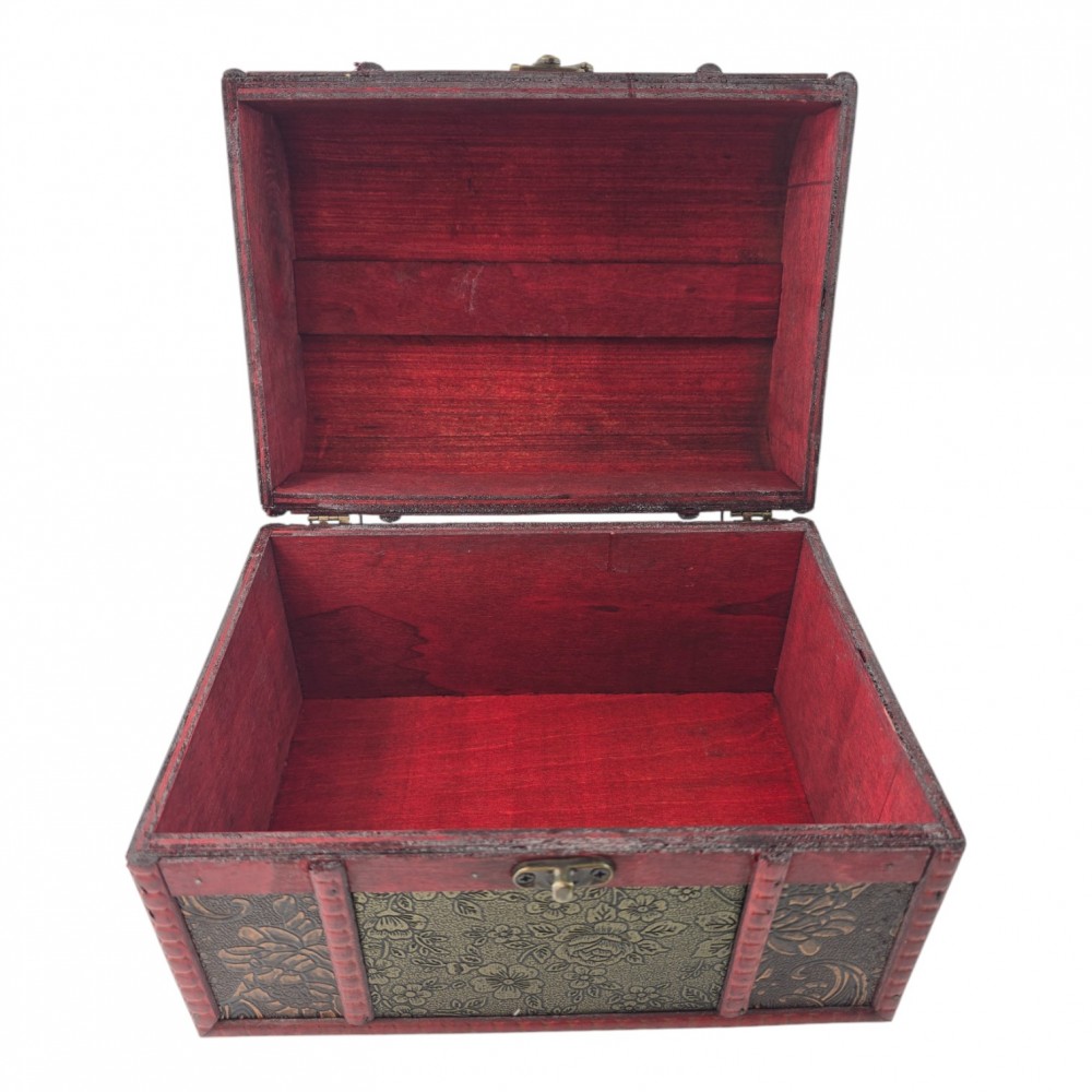 Набор из трех сундучков "Триада Тайн" — это не только великолепный элемент декора, но и практичное решение для хранения ваших сокровищ. Каждый сундучок выполнен из дерева с искусной декоративной отделкой, которая придает изделию винтажный и изысканный вид. Узорчатый рисунок и глубокий красный оттенок создают атмосферу тайны и роскоши. Сундучки идеально подходят для хранения украшений, писем, памятных сувениров и прочих дорогих сердцу вещей. Этот набор добавит нотку изящества вашему интерьеру и подчеркнет ваш вкус.