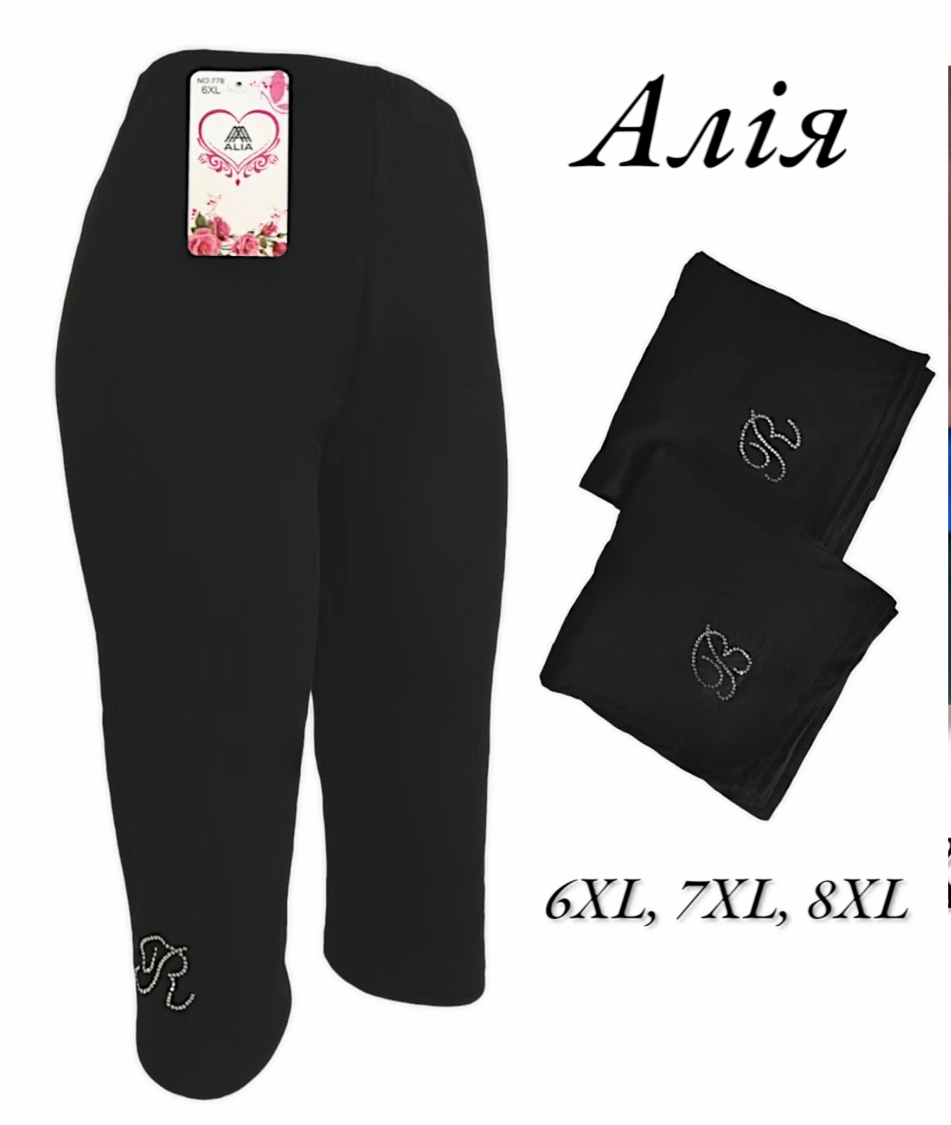 Бріджі жіночі трикотажні, прикрашені стразами. Фірми Алія. Батал. Розміри: 6XL, 7XL, 8XL.