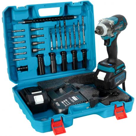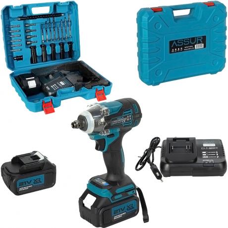 Акумуляторний безщітковий гайковерт 21V, 300 Н·м, 2 акумулятори, набір 25 предметів, у кейсі ASR054