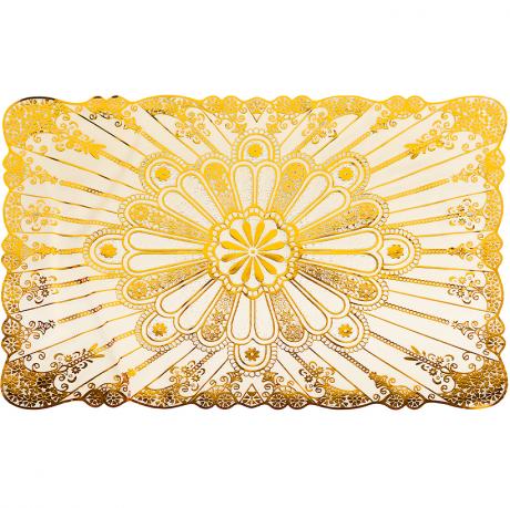 Прямокутна сервірувальна серветка для столу розміром 45×30 см у золотому кольорі — стильний і практичний елемент сервірування. Декоративний візерунок додає столу святкового вигляду та підкреслює естетику подачі страв. Серветка підходить для розміщення під тарілки, столові прибори, сервірувальні блюда, підноси й декоративні елементи. Вона захищає поверхню столу та скатертину від забруднень, подряпин і слідів від посуду. Прямокутна форма універсальна та добре поєднується з класичним і сучасним інтер’єром, підходить для щоденного використання й урочистих подій. Вдалий вибір для дому, кафе, ресторанів і банкетних залів.