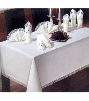 Скатерть Cicek Agova Tasli камни, изготовлена из жаккардовой ткани на основе 100 % полиэстера. Турецкий производитель дорожит своей репутацией и тщательно следит за соответствием своей продукции высоким стандартам качества. Кремовая скатерть украшена красивым кружевом и декоративными стразами, в виде шикарного канта. В комплект так же входят салфетки, выполненные в том же стиле. Текстиль смотрится очень дорого и роскошно, станет настоящим украшением любого интерьера и праздника. Комплектуется в подарочную упаковку с фирменным логотипом.