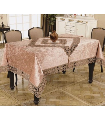 Рады предложить Вам великолепную скатерть Selin Sude от турецкого производителя. Модель представлена в красивой расцветке, выполнена из мягкого велюра с красивым рисунком и дополнена кружевом. Ткань на основе полиестра. Эта скатерть обеспечит вам хорошее настроение, уют и комфорт во время праздника за столом. Велюр имеет высокую устойчивость к смятию и повреждениям, что делает изделия из этой ткани очень популярными среди покупателей домашнего текстиля. Скатерть имеет приятный рисунок, отличается мягкой текстурой, шелковой гладью и в то же время прочностью, а также продолжительным сроком эксплуатации.