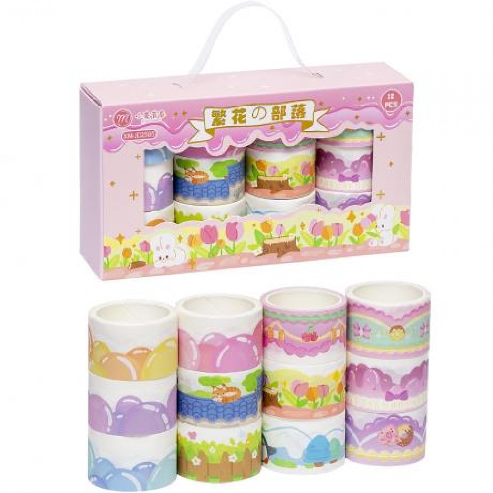 Набір декоративного скотчу. Відмінно використовують для вклеювання дитячих фотографій, декору книг, кімнатного декору чи подарункової упаковки. Розміри: ширина 2,5 см, довжина до 2м. Ціна вказана за упаковку (12 бобін).