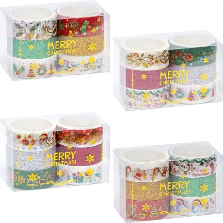 Декоративний скотч "Merry Christmas" XM-JD2273-2 (6 бобін у тубі), 1,5 см × 2 м — святковий елемент для декору та творчості. Ідеально підходить для оформлення подарунків, декору блокнотів, книг, кімнати, а також для скрапбукінгу та вклеювання дитячих фото. Паперову стрічку легко відірвати вручну, вона не залишає слідів.