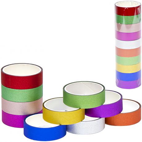 Набір декоративного скотча. Яскравий з різною тематикою. Відмінно використовують для вклеювання дитячих фотографій, декору книг, кімнатного декору або подарункової упаковки. Розмір: ширина 1,5 см, довжина 3 м. В 1 тубі 10 різних рулонів скотчу. Ціна вказана за 1 туб (10 бобін).