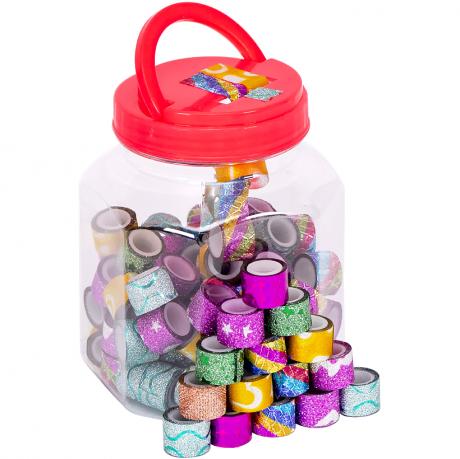 Набір декоративного скотча. Яскравий з різною тематикою. Відмінно використовують для вклеювання дитячих фотографій, декору книг, кімнатного декору або подарункової упаковки. Розмір: ширина 1,2см, довжина 1 м. В 1 банці 90 рулонів скотчу. Ціна вказана за 1 банку (90 бобін).