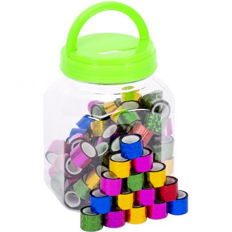Набір декоративного скотча. Яскравий з різною тематикою. Відмінно використовують для вклеювання дитячих фотографій, декору книг, кімнатного декору або подарункової упаковки. Розмір: ширина 1,2см, довжина 2 м. В 1 банці 90 рулонів скотчу. Ціна вказана за 1 банку (90 бобін).