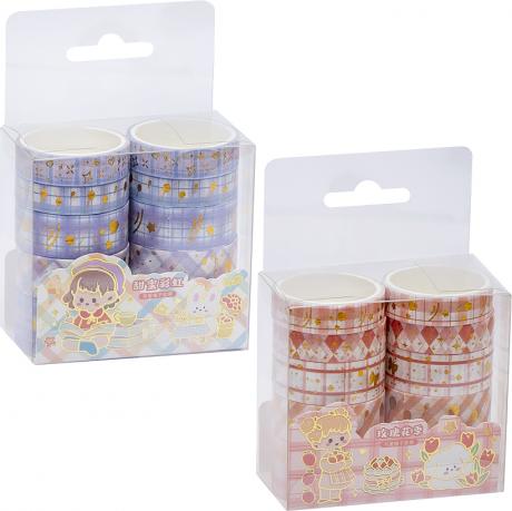 Набір декоративного скотчу. Відмінно використовують для вклеювання дитячих фотографій, декору книг, кімнатного декору чи подарункової упаковки. Розмір: ширина 1 см-4шт, 1,5 см-4шт, 2см-2шт, довжина 2 м. Ціна вказана за 1тубу (10 бобін).