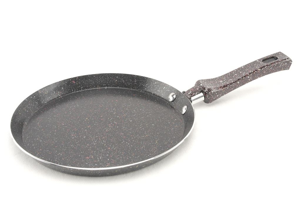 Сковорода изготовлена из качественного алюминия, который характеризуется высокой теплопроводностью и имеет тефлоновое покрытие – термостойкое и не смачиваемое. Такая поверхность данного товара не содержит вредные вещества и является антипригарной. Тефлон, нанесеный тонким слоем, позволяет значительно улучшить качество приготовленных блинов, омлетов, оладушек практически не используя жиров. Приспособлена для приготовления на всех современных типах плит. С помощью удобной ручки из бакелитового пластика и небольшому весу сковороды, перевернуть блин на другую сторону можно одним движением руки. Ручка не нагревается и не деформируется. Сковорода легко моется в теплой воде с помощью мягкой губки. В коробке три расцветки.