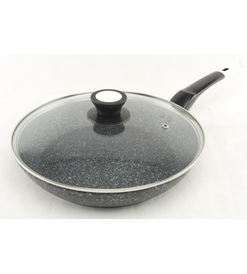 Сковорода изготовлена из качественного литого алюминия, который характеризуется высокой теплопроводностью и имеет гранитное покрытие - экологически пригодное для термической обработки пищи. Поверхности данного товара не содержат вредные вещества. Гранитное покрытие аккумулирует тепло, равномерно распределяя его по поверхности, что экономит затраты энергии на приготовление пищи и значительно уменьшает расход жиров при жарке. Приспособлена для приготовления на всех современных типах плит. С помощью удобной бакелитовой ручки сковороду легко и безопасно перемещать в процессе использования. Ручка не нагревается и не деформируется. Стеклянная крышка имеет нержавеющий ободок, что препятствует сколу стекла, и отверстие для отвода образующегося пара. Сковорода легко моется в теплой воде.