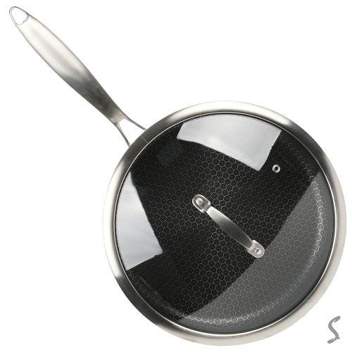 Сковорода-сотейник с антипригарным покрытием с крышкой "Соты" d28см инд. дно