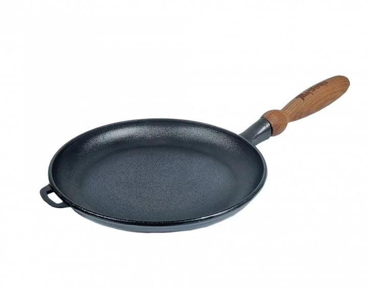 Сковорода чугунная блинная Maysternya Ø22см, глубина 2,5см с деревянной ручкой