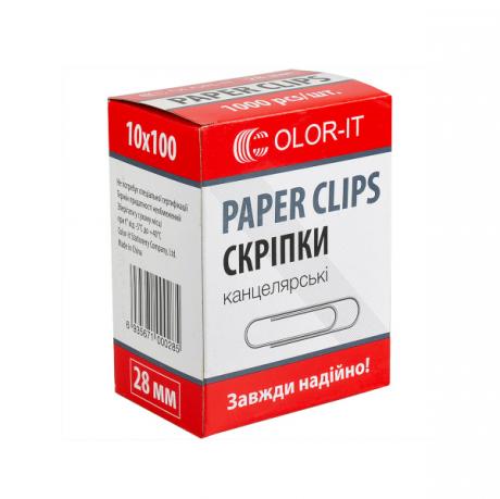 Це кругла металева скріпка діаметром 28 мм, модель "С" S328. Продукт поставляється в картонній упаковці, в якій знаходиться 100 штук.