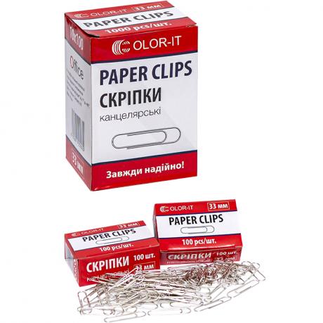 Ця скріпка виготовлена з металу, має круглу форму та розмір 33 мм. Модель "С". Продукт поставляється в картонній упаковці.