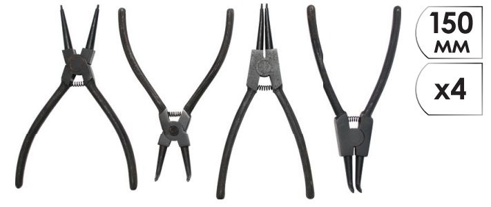 Набор щипцов (4шт) для снятия и установки стопорных колец 150мм Intertool HT-7001