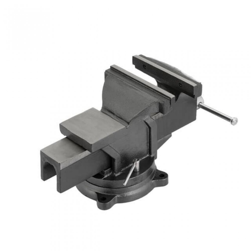 Усиленные слесарные тиски INTERTOOL HT-0084 предназначены для закрепления заготовок, предметов и деталей для дальнейшей их обработки. Усиленная металлическая конструкция тисков с наковальней весом 26,350 кг. позволяет выполнять тяжелые слесарные и ударные работы. Поворотная база дает возможность разворачивать и неподвижно фиксировать заготовку в диапазоне 360° вокруг своей оси для удобства выполнения работ. Закаленные губки с зубчатой поверхностью обеспечивают надежный захват и износостойкость рабочей поверхности. Тиски можно установить стационарно с помощью отверстий в базе.