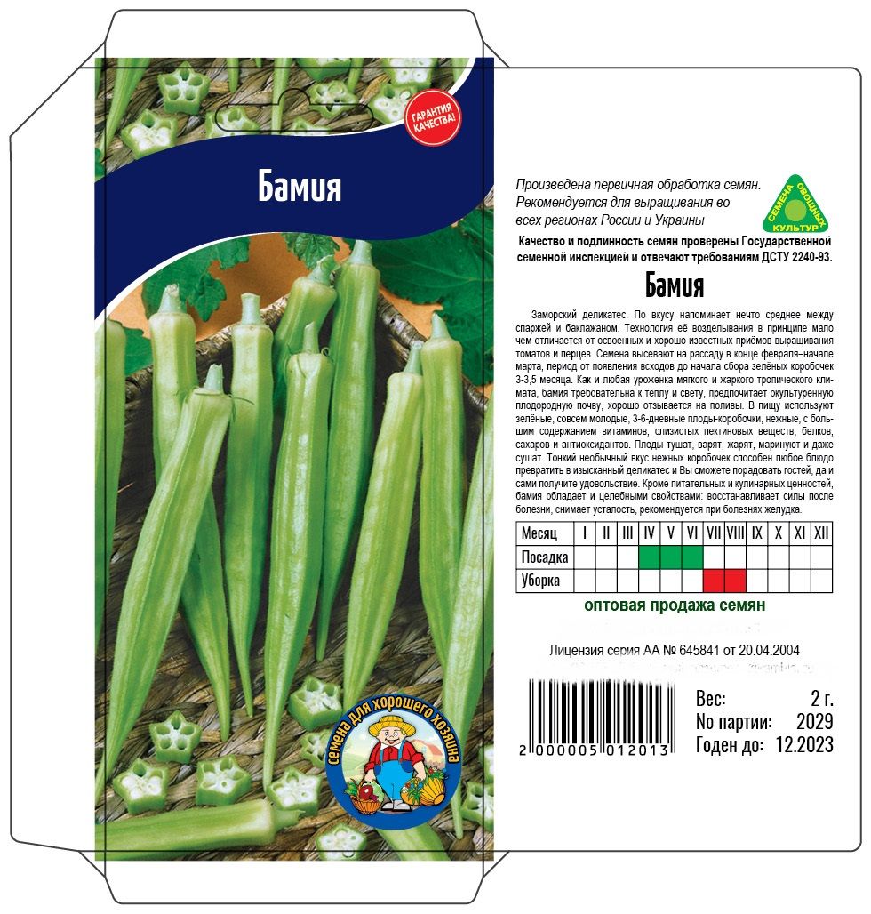 Заморский деликатес. По вкусу напоминает нечто среднее между спаржей и баклажаном. В пищу используют зелёные, совсем молодые, 3-6-дневные плоды-коробочки, нежные, с большим содержанием витаминов. Плоды тушат варят, жарят, маринуют и даже сушат. Тонкий необычный вкус нежных коробочек способен любое блюдо превратить в изысканный деликатес.