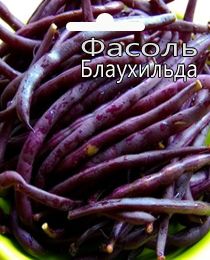 Фасоль спаржевая Блаухильда Оригинальная спаржевая фасоль с длинными, мясистыми, темно-фиолетовыми стручками. После кулинарной обработки стручки становятся темно-зеленого цвета. Используется для консервирования, замораживания и приготовления всевозможных овощных гарниров. Растение вьющееся, требует опоры.Блаухильда — это сорт фасоли. Очень приятный мясной аромат